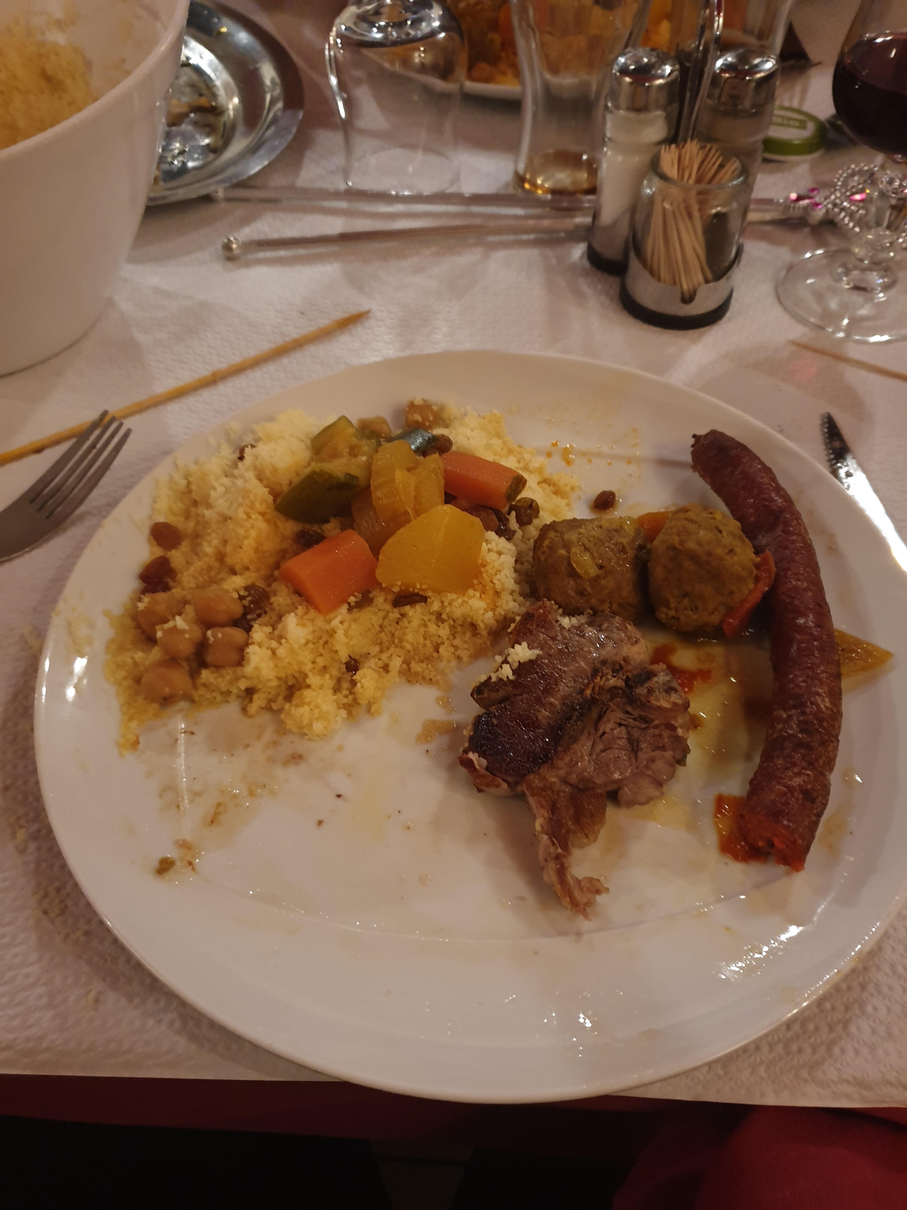 Le couscous Méchoui frôle la perfection. Service avec un rosé exceptionnel château de Meknès Ain et un service fort sympathique, ... que du bonheur 😀