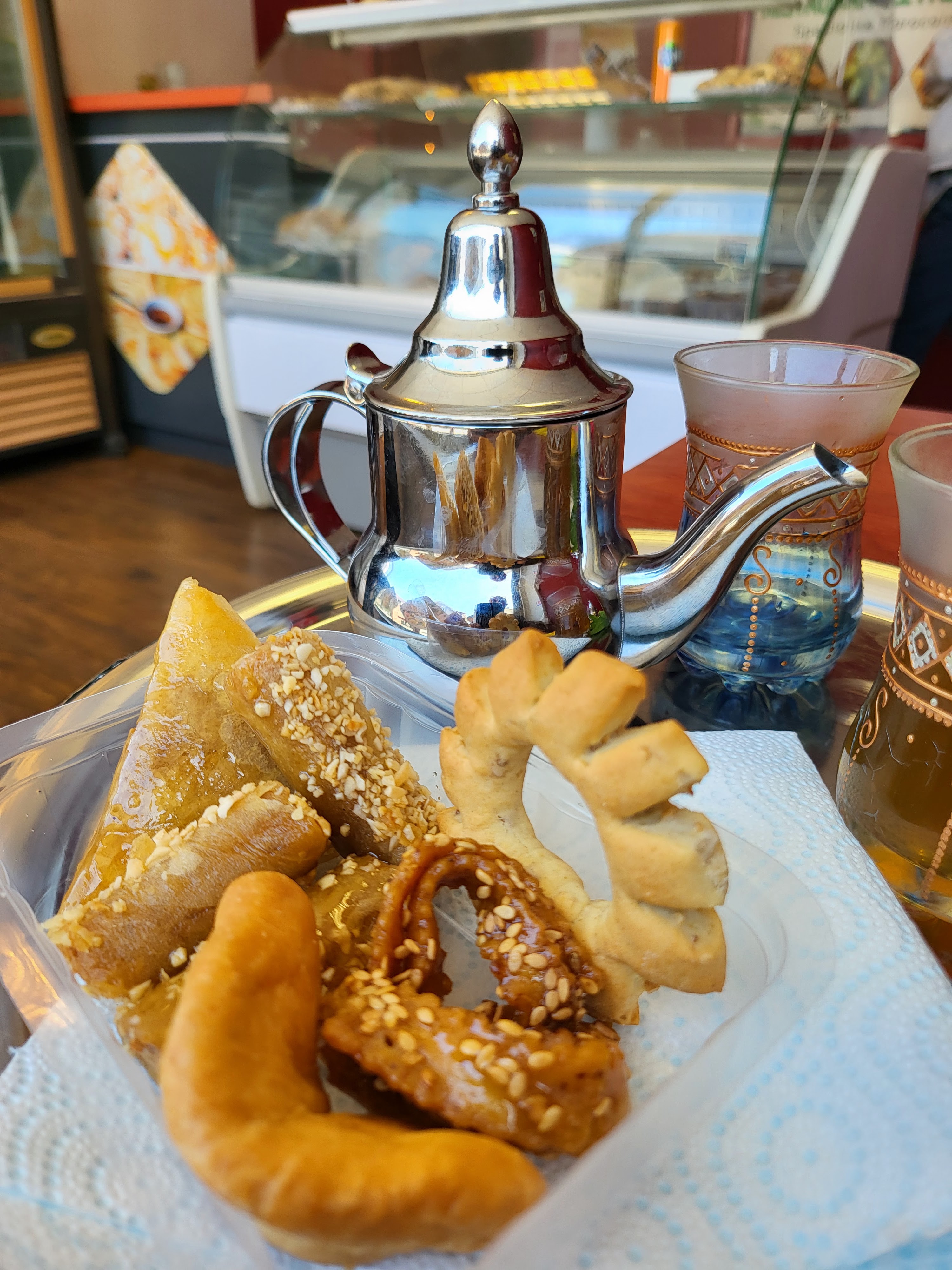 Chouette surprise ce matin. Une nouvelle adresse ou plutôt une invitation au voyage. Très bon accueil d' Ider gérant. Je me suis laissé tenté par un thé et des patisseries marocaines. J'ai decouvert le parcours d'Ider, la restauration traditionnelle fait partie de son ADN. Une envie de partage et d'authenticité a des prix plus qu'abordable. Un titre arbore le comptoir. Ider m'explique qu'il récompense le talent de son équipe pour la qualité des pâtisseries. Valeurs sûre, je recommande cette adresse. Merci