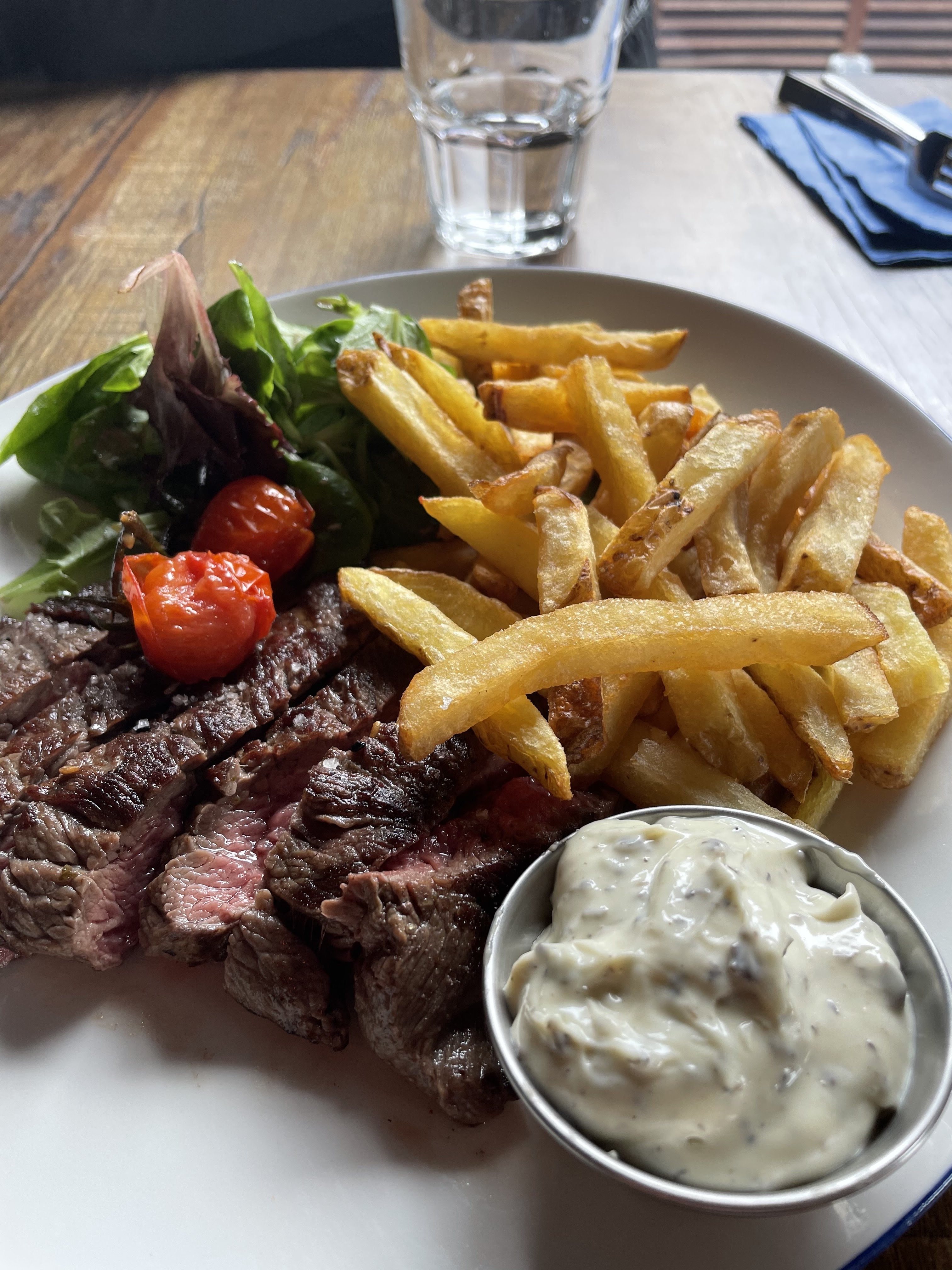 Lieu sympa, restaurant qui donne envie et accueillant. Cependant petit bémol, nous avions commandé en entrée une planche de charcuterie, et ensuite mon amie a commandé une salade paysanne, elle a reçu littéralement quasi la même planche de charcuterie commandée précédemment, avec seulement le camembert en plus … il aurait été bon de l’informer au moment de la commande ou alors de noter sur la carte que ce n’est pas une salade mais plutôt une planche, puisqu’elle est servie sur une planche finalement. Sinon le reste du repas était bon, les moules frites à volonté étaient bonnes mais manquaient un peu de sauce.