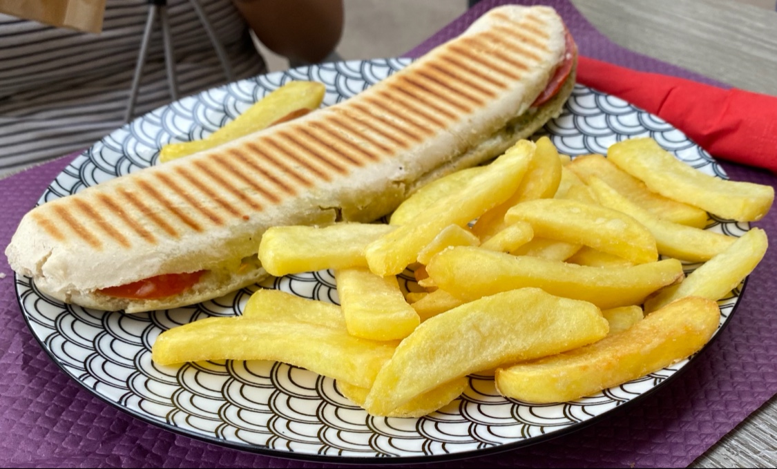 Panini froid avec du fromage non vendu, un pain bagnat pas très très bon non plus... C'est dommage, le snack est bien placé