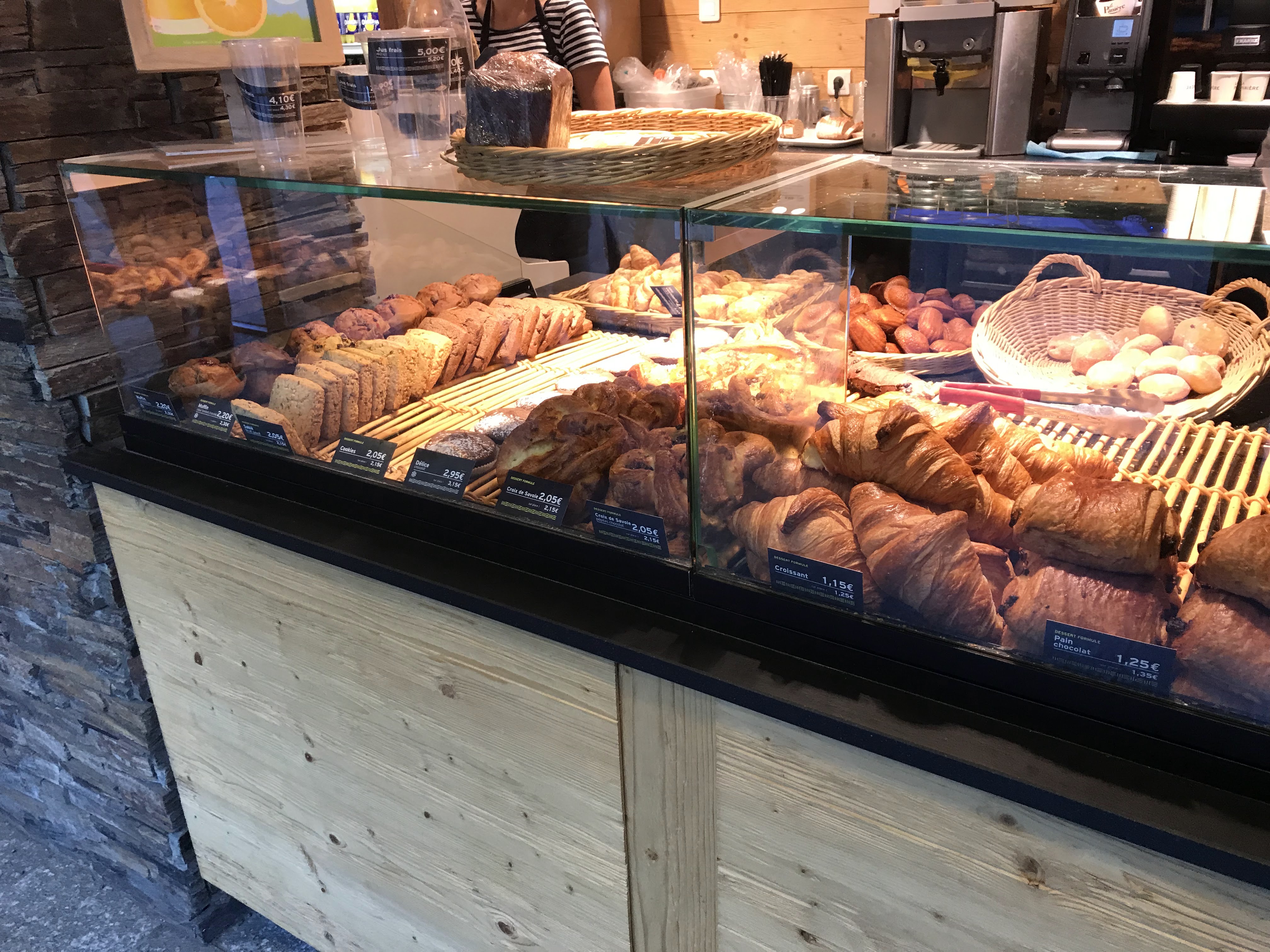 Une sympathique boulangerie près du cœur de Chamonix. Bons produits, service souriant et tables extérieures face au massif du Mont Blanc
