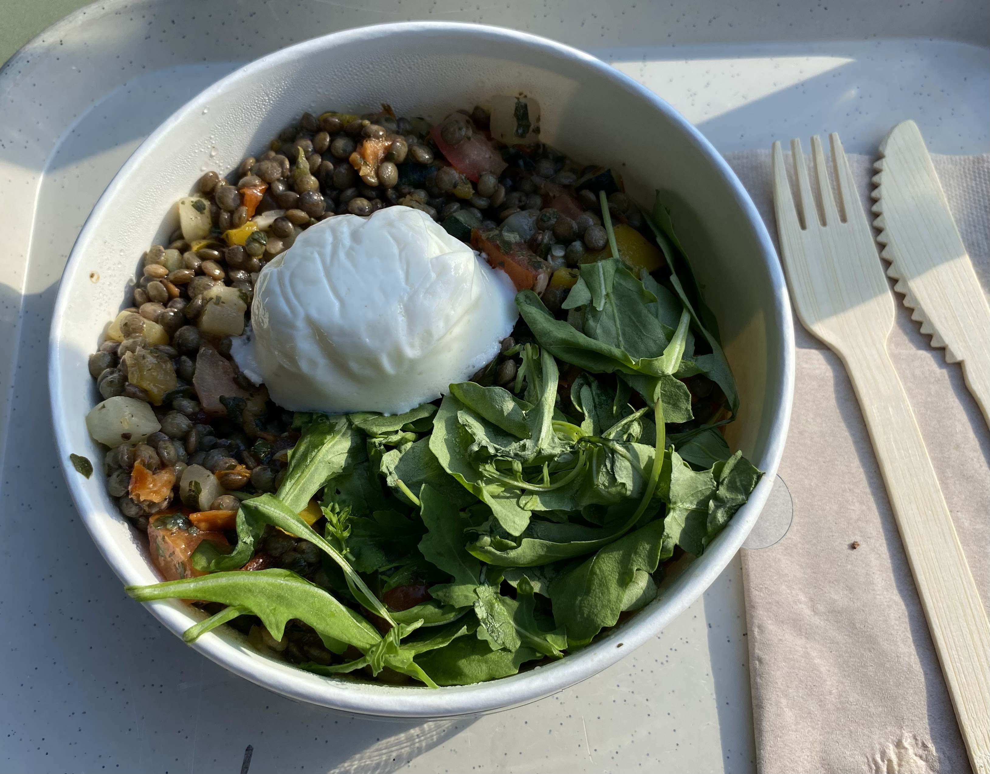 Ma première visite et favorablement impressionné. Une délicieuse salade de lentilles, œuf et légumes d'été. Je reviendrai.