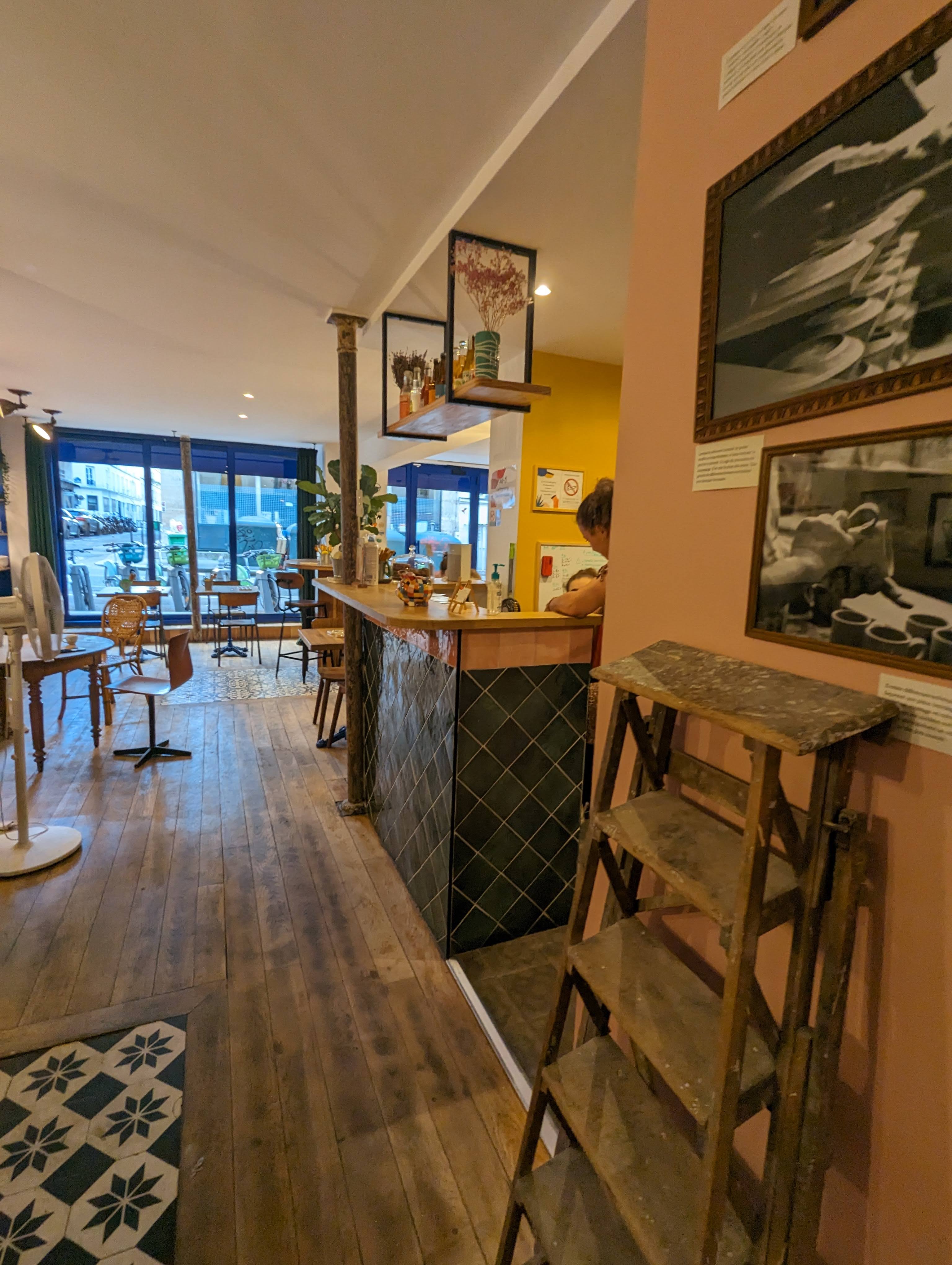 Accueil froid et sec, pas très sympathique. La céramique n’est pas de très bonne qualité quand à la pâte qui a tendance à se fritter. Je trouve les tables trop petites pour travailler dessus et commander à manger/boire un café.
