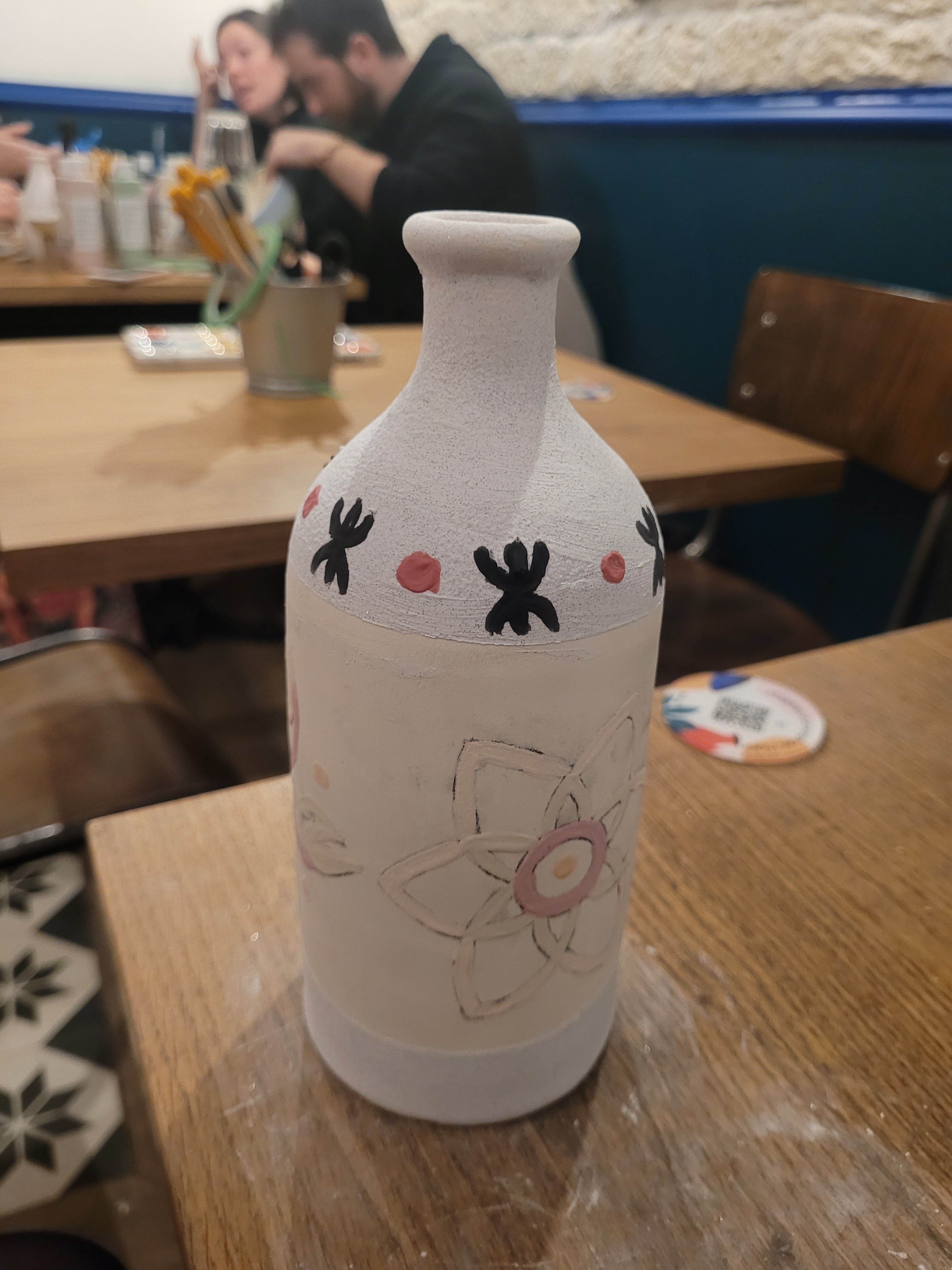 C’était une expérience super cool et vraiment amusante, j’ai adoré laisser libre cour à ma créativité. On a bien été accueilli et les boissons étaient très bonnes. Seul bémol, je ne pensais pas devoir revenir un autre jour pour chercher ma céramique. Ce qui peux être compliqué pour les personnes habitant loin de Paris.