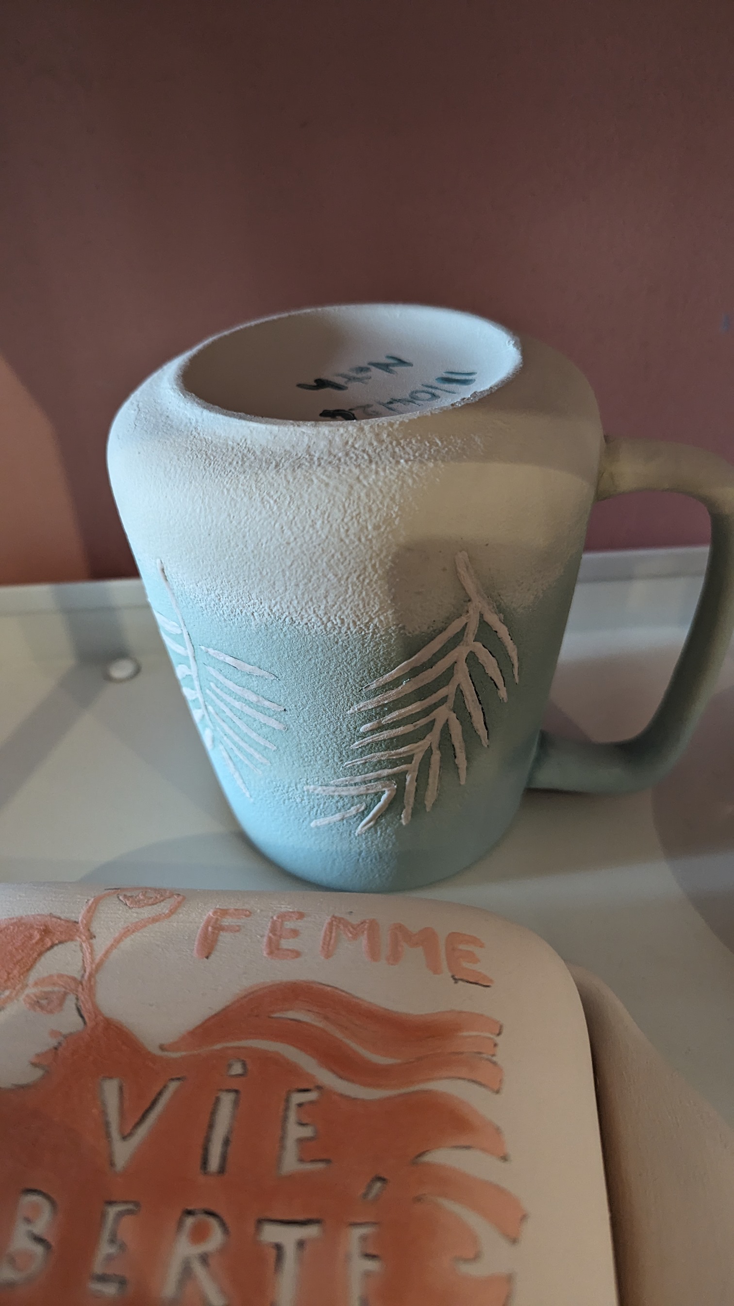 Très belle expérience de peinture de céramique. J'adore ma nouvelle tasse, les couleurs sont très brillantes. Une très belle idée d'activité entre amis ou collègues.