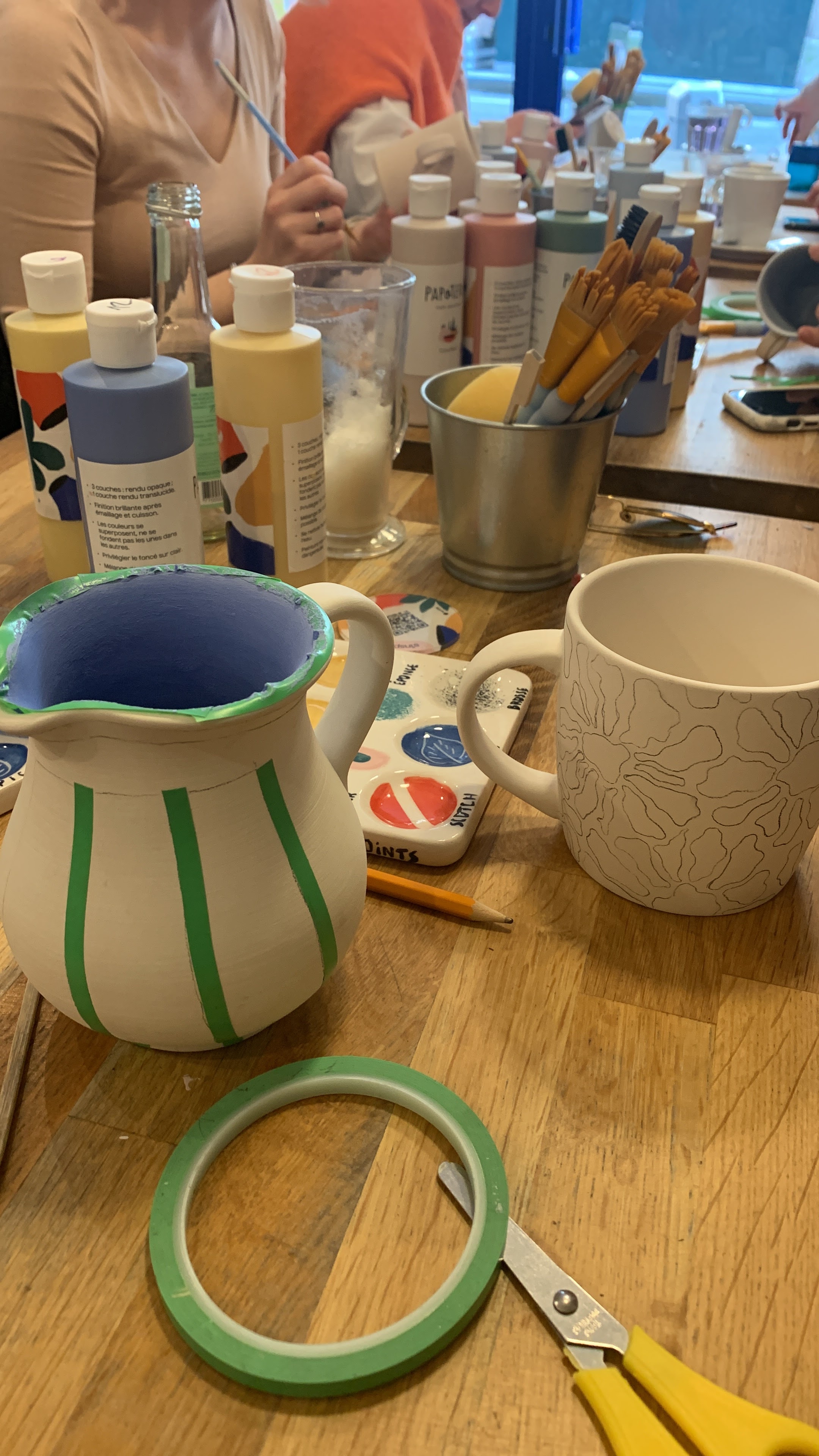 Nous sommes allées à la papoterie ce jour. On avait réservé sur le site un brunch qui inclus une pièce céramique de 30€. Arrivées sur place, Capucine a pris le temps d’expliquer au groupe le déroulé et nous a donné quelques tips pour mieux réussir nos personnalisations 😊 Cet atelier nous a permis de se détendre, une super expérience que je recommande.