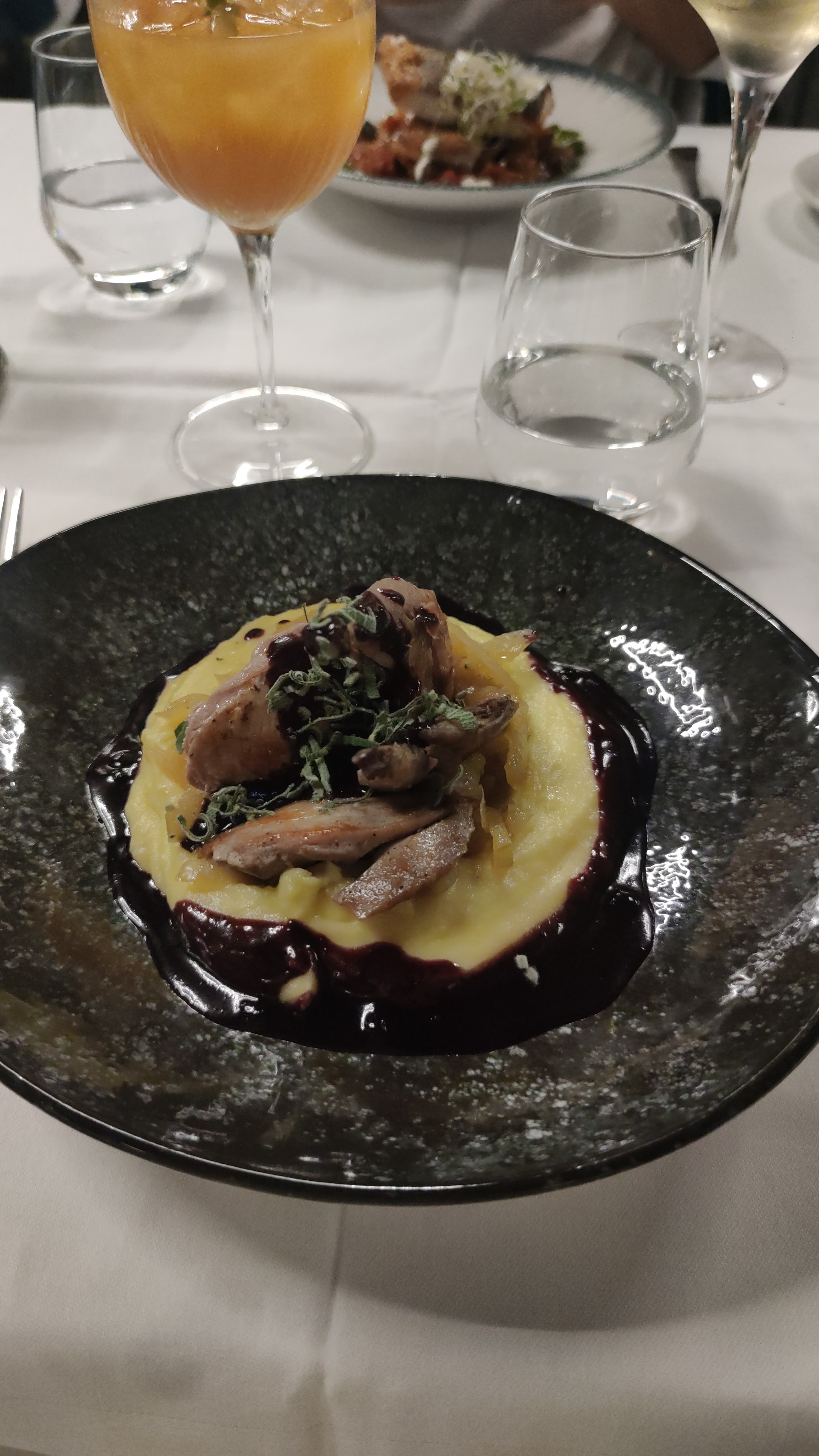 Accueil très chaleureux et professionnel, Mise en bouches incroyables, j'ai pris le riz de veau braisé aux morilles et au porto Sur purée de petits pois verts , Servi avec un excellent pouilly fumé bien frais,.. Une tuerie😲💥💚💛💜😍, C'est une très belle découverte ce restaurant !