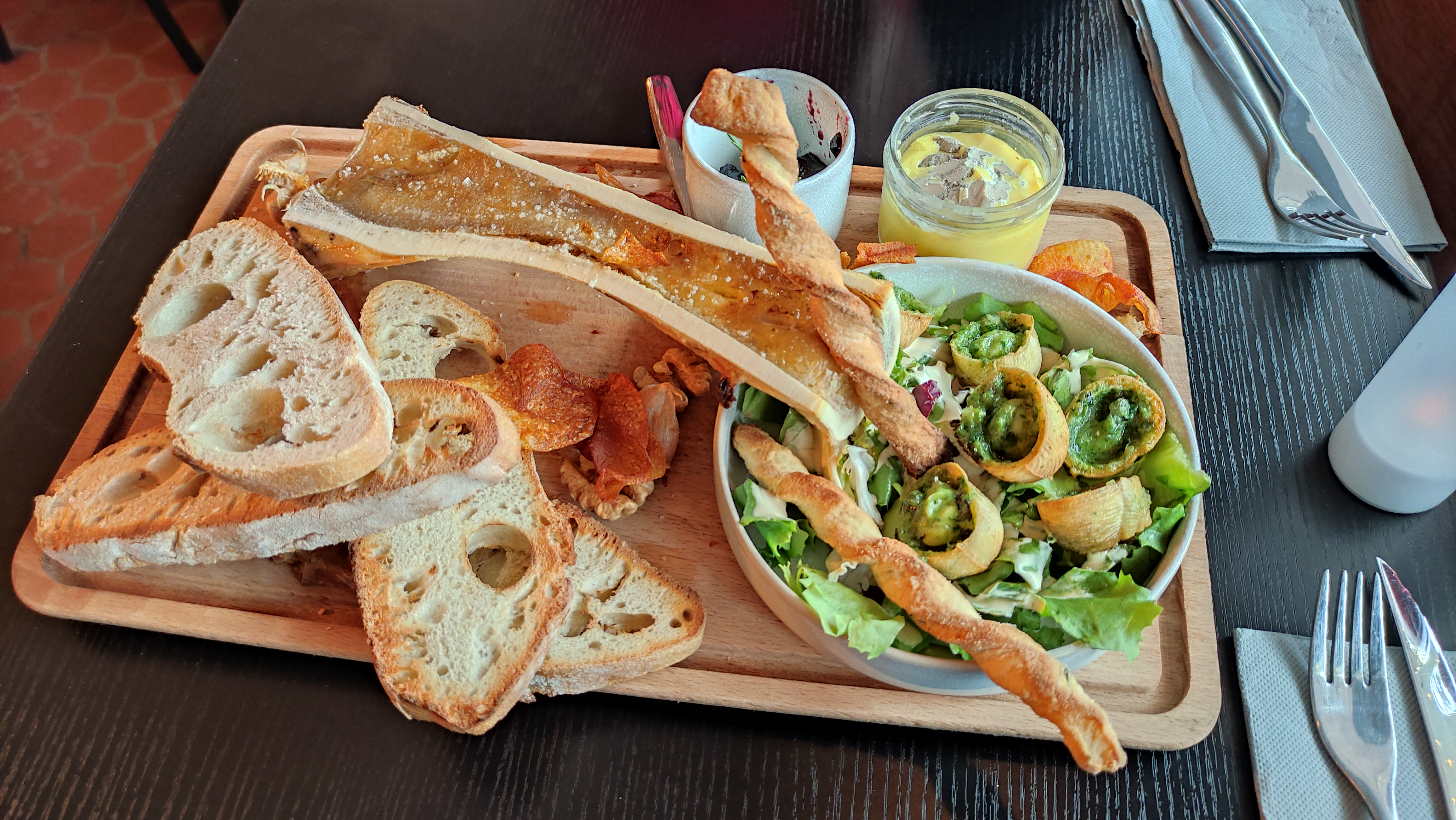 Le meilleur burger que j'ai jamais mangé. Bœuf effiloché avec une grosse tranche de fromage local dans un petit pain brisoche. Incroyable. Les escargots étaient également délicieux.