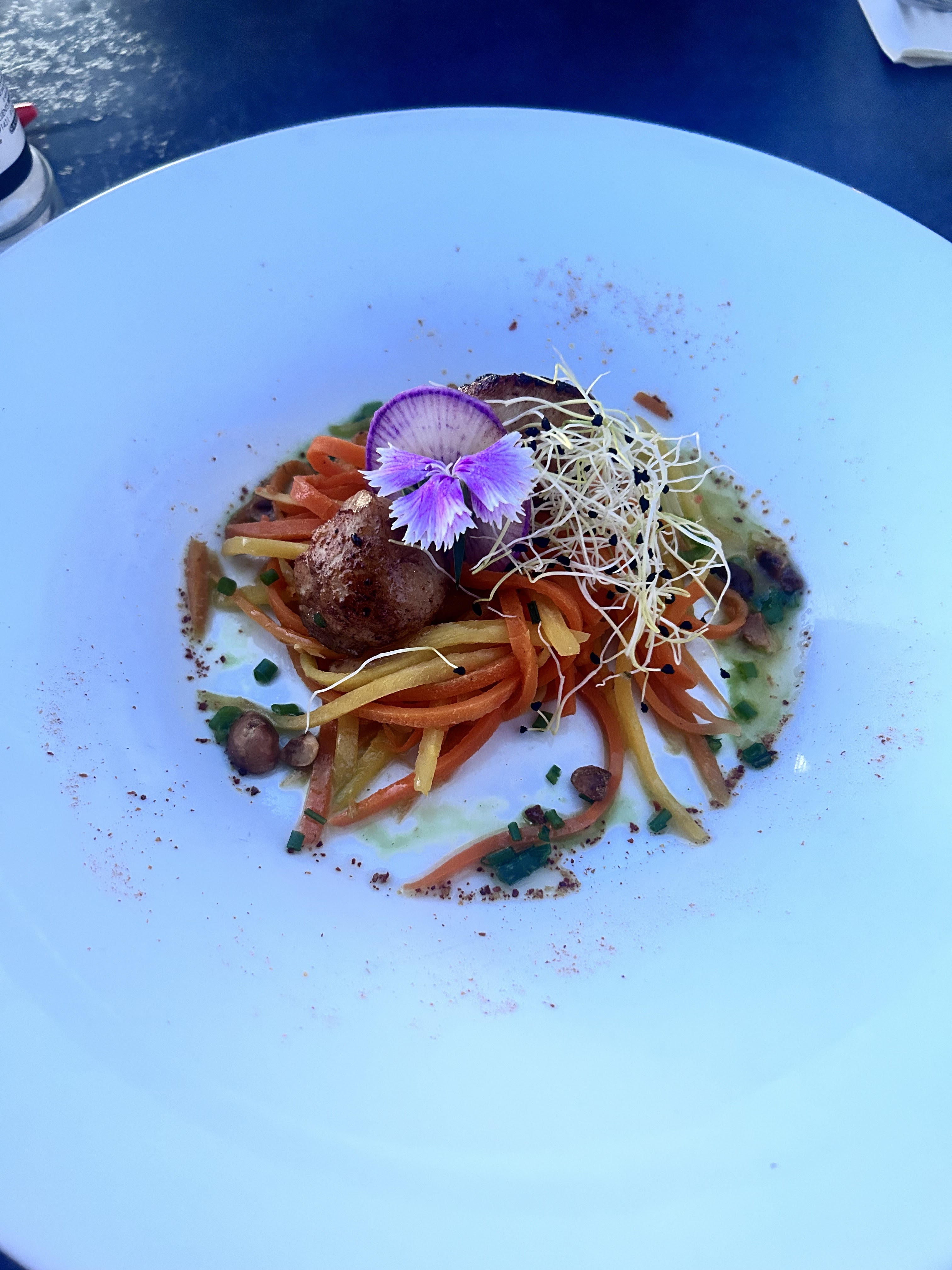Une vue imprenable…et une cuisine divine ! Vraiment !!! Qualité des plats, de la vaisselle…et un service au top !
