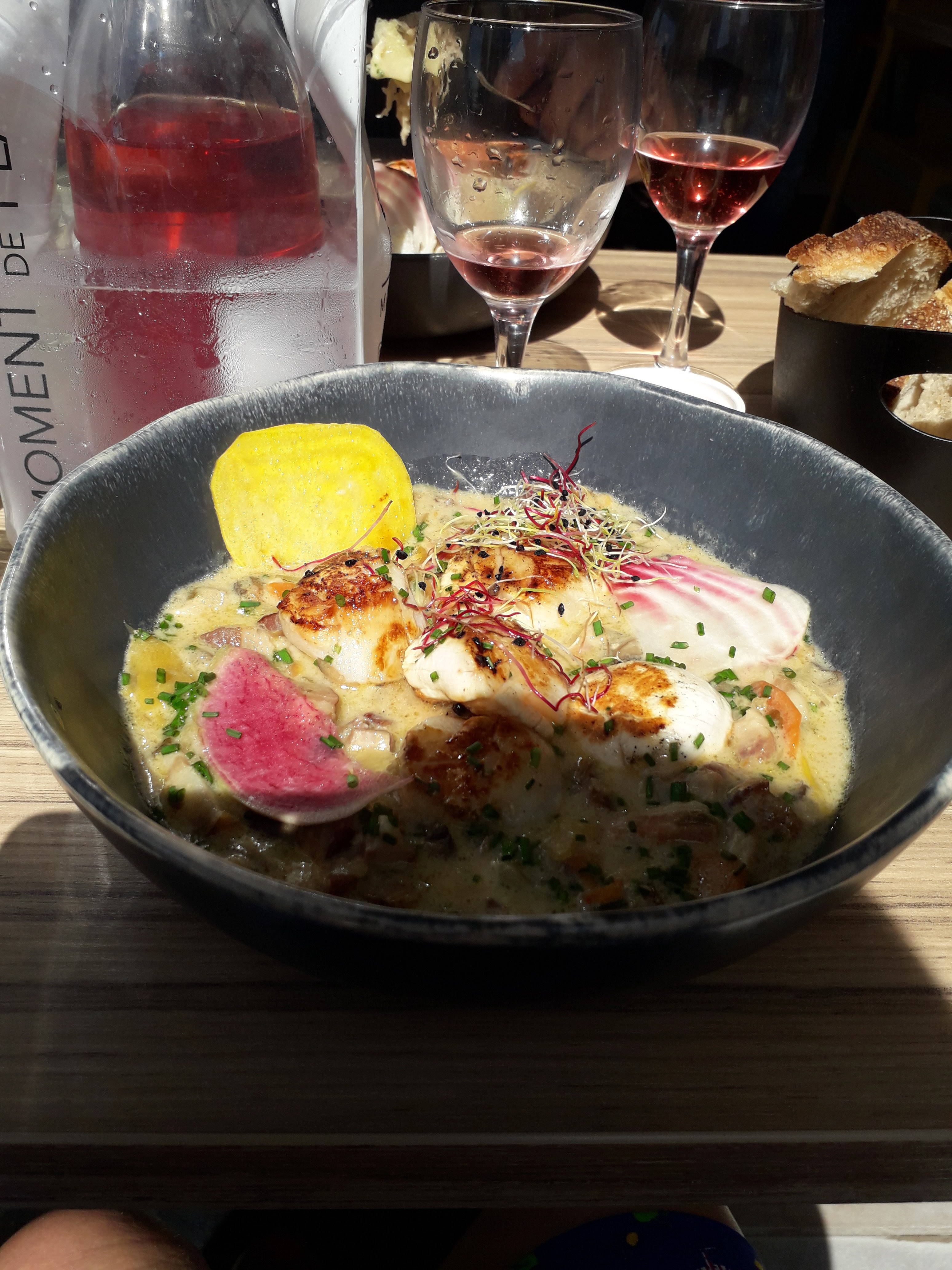 Déçu des moules la parenthèse 3 rondelles de carottes un lardon et 3 morceaux de champignons pas où très peu de crème fraîche pour 18 euros... Sinon le premier serveur très gentil mais la serveuse qui a suivis le service très froide... Du coup nous avons pas pris de desserts.