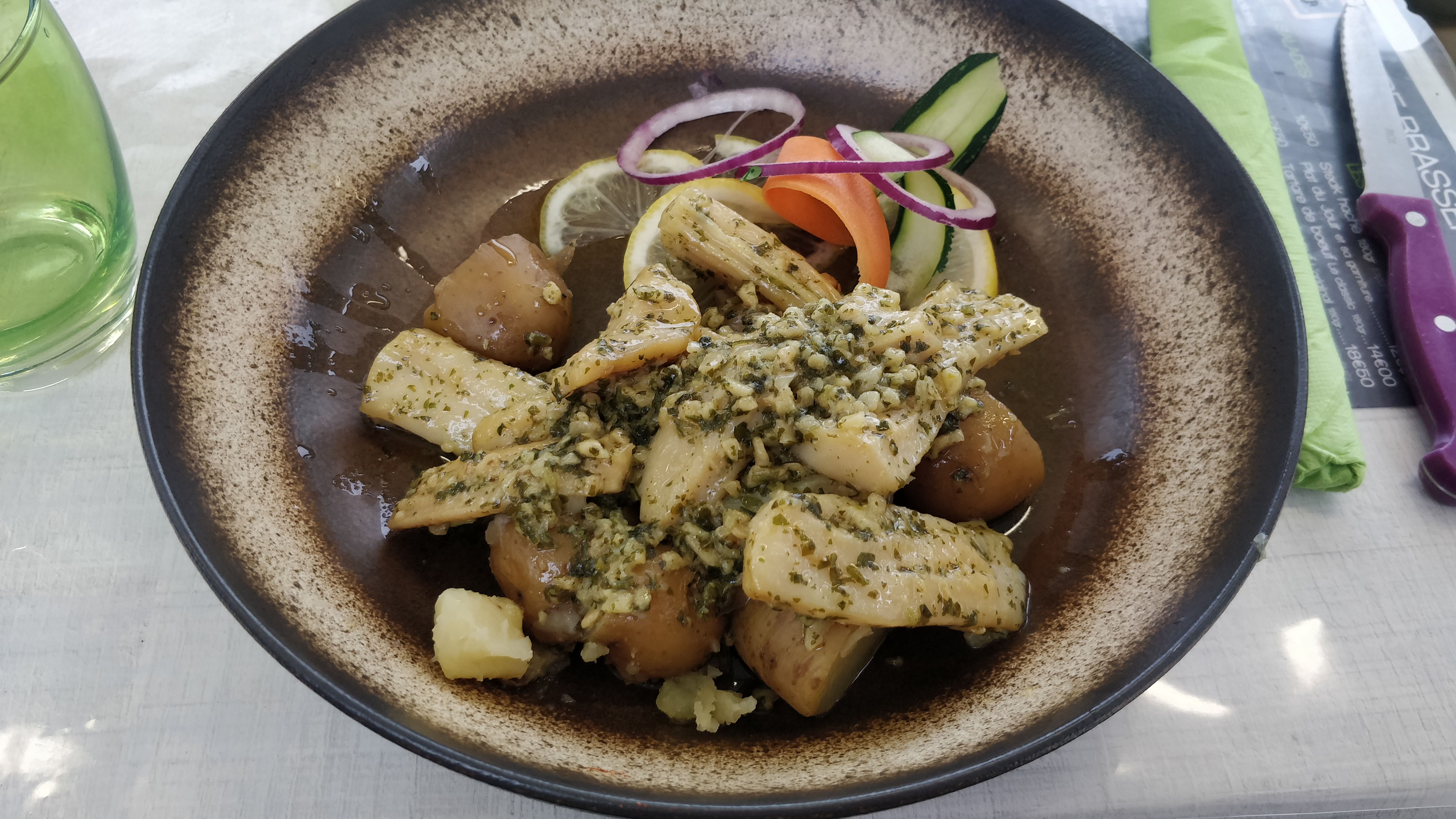 Super restaurant, du poisson bien préparé, sauce beurre citronnée, mousseline de haricot, préparation de betteraves fines découpées UN REGAL!!! COUPE DE GLACE haute de 30cm. Le tout servis avec bonne humeur et de la simplicité. Bravo à ce restaurant!!!! Je valide!!!!