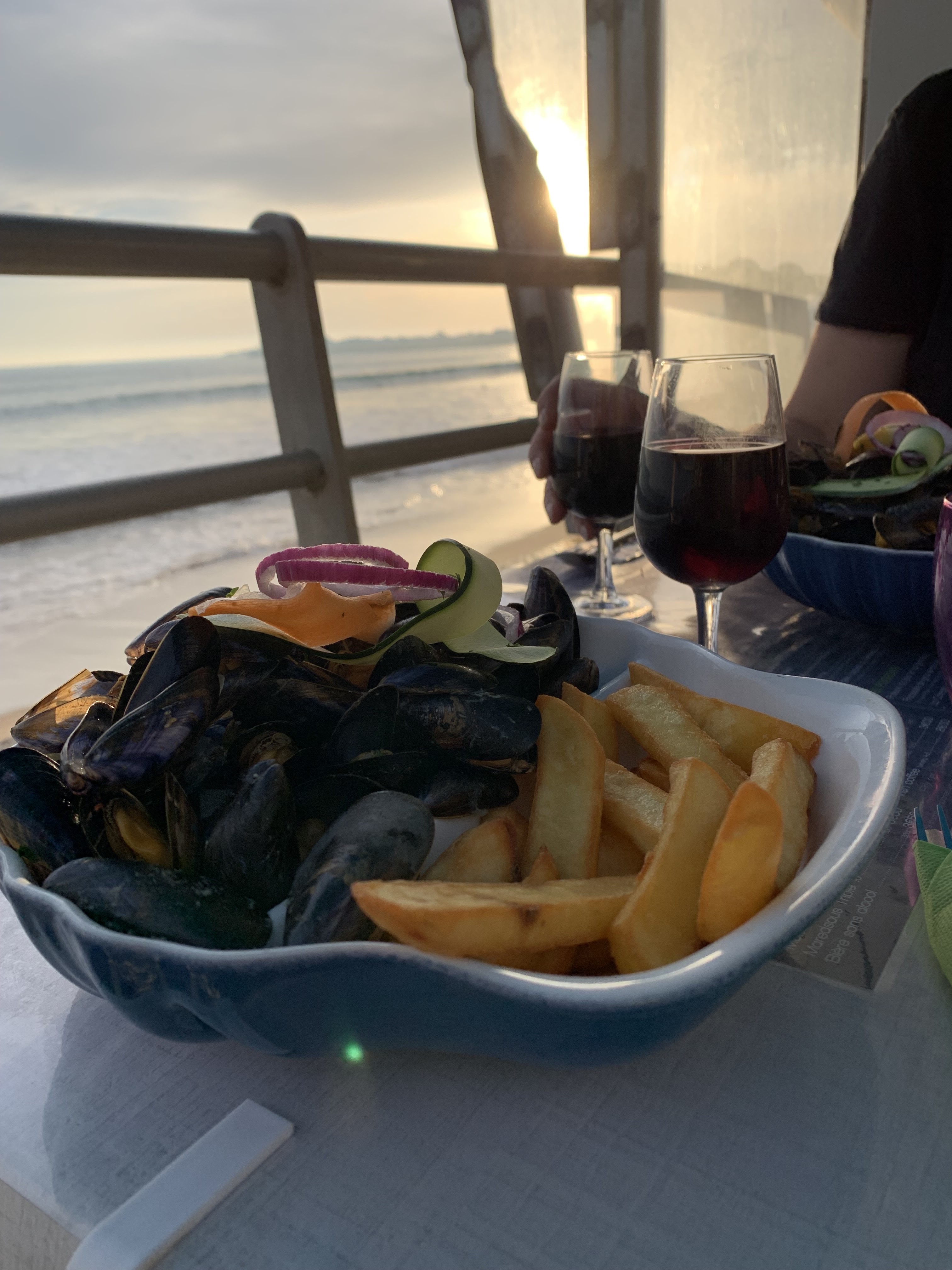 De passage en vacance, nous sommes venus en famille, les moules frites étaient très bonnes et très copieuses. Les plats étaient énorme ☺️. Personnel très pro qui nous ont écoutés et on su s'adapter surtout à notre demande de doggybagg. Très appréciable. Je recommande. La vue sur l' océan est vraiment magnifique.