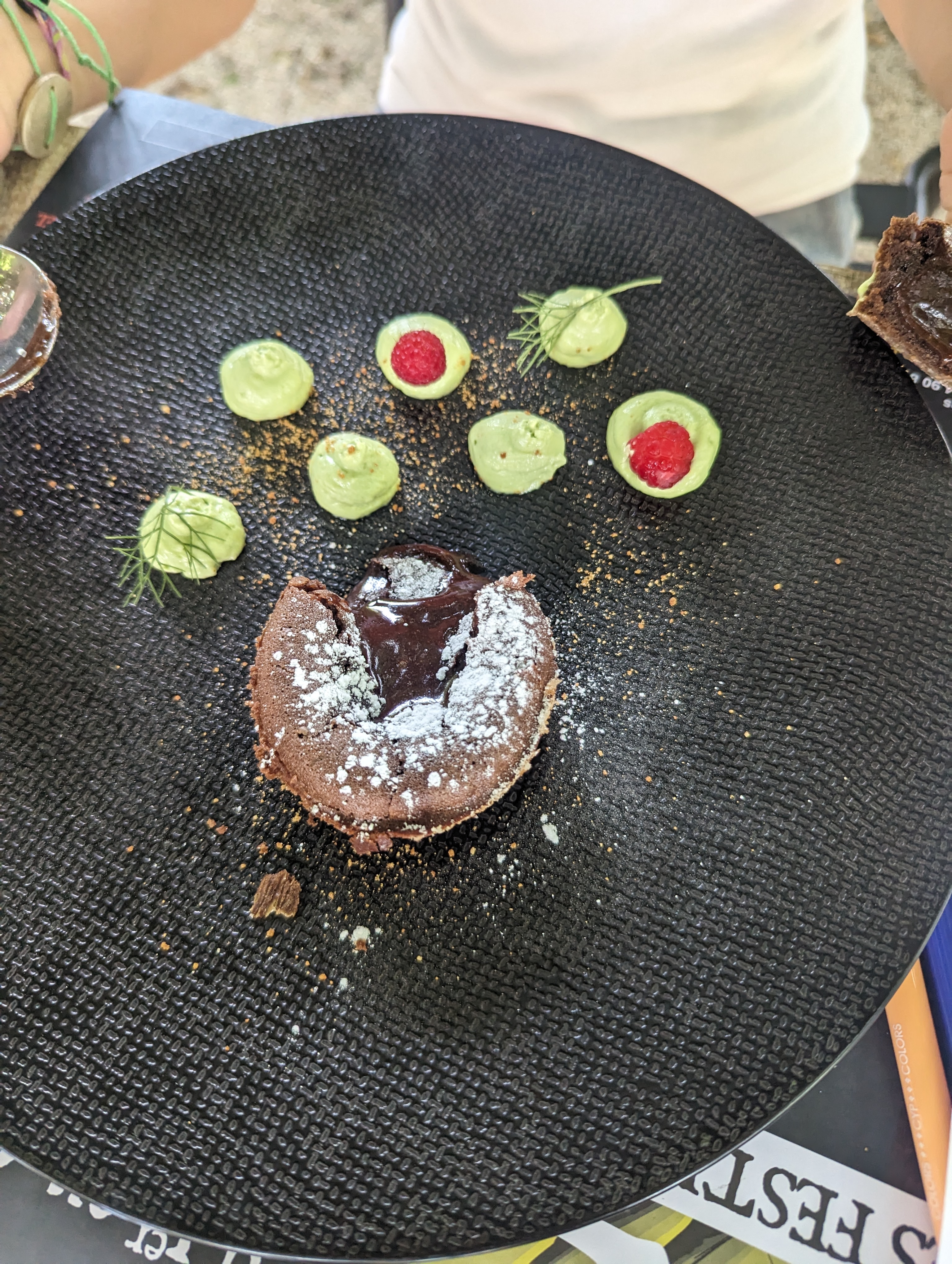 Véritable coup de cœur pour « La Parenthèse ». Le chef Rémi, tout récemment installé, propose d’excellents plats cuisinés avec les herbes prises dans le jardinet attenant. Nous avons particulièrement aimé le papeton d’aubergine, la souris d’agneau gentiment et lentement braisée avec son écrasé de pomme de terre, ses noix de saint Jacques poêlées avec sa crème vanille et minis légumes qui ont charmé nos papilles. Pour ce qui est des desserts, vous saurez apprécier le moelleux au chocolat crème pistache ou la pavlova chantilly fraises ou encore la tarte fine et feuilletée, mousse pistache et framboise, autant de desserts fins, gourmands et juste sucrés ce qu’il faut. La carte change régulièrement en fonction des produits du marché ce qui fait que vous pourrez y retourner sans déguster les mêmes plats. Laurence vous servira ces mets avec beaucoup de professionnalisme, arborant par ailleurs un grand sourire, que vous vous installiez à l’intérieur ou sur la terrasse à l’ombre des grands arbres. Bel endroit qui vaut le détour.