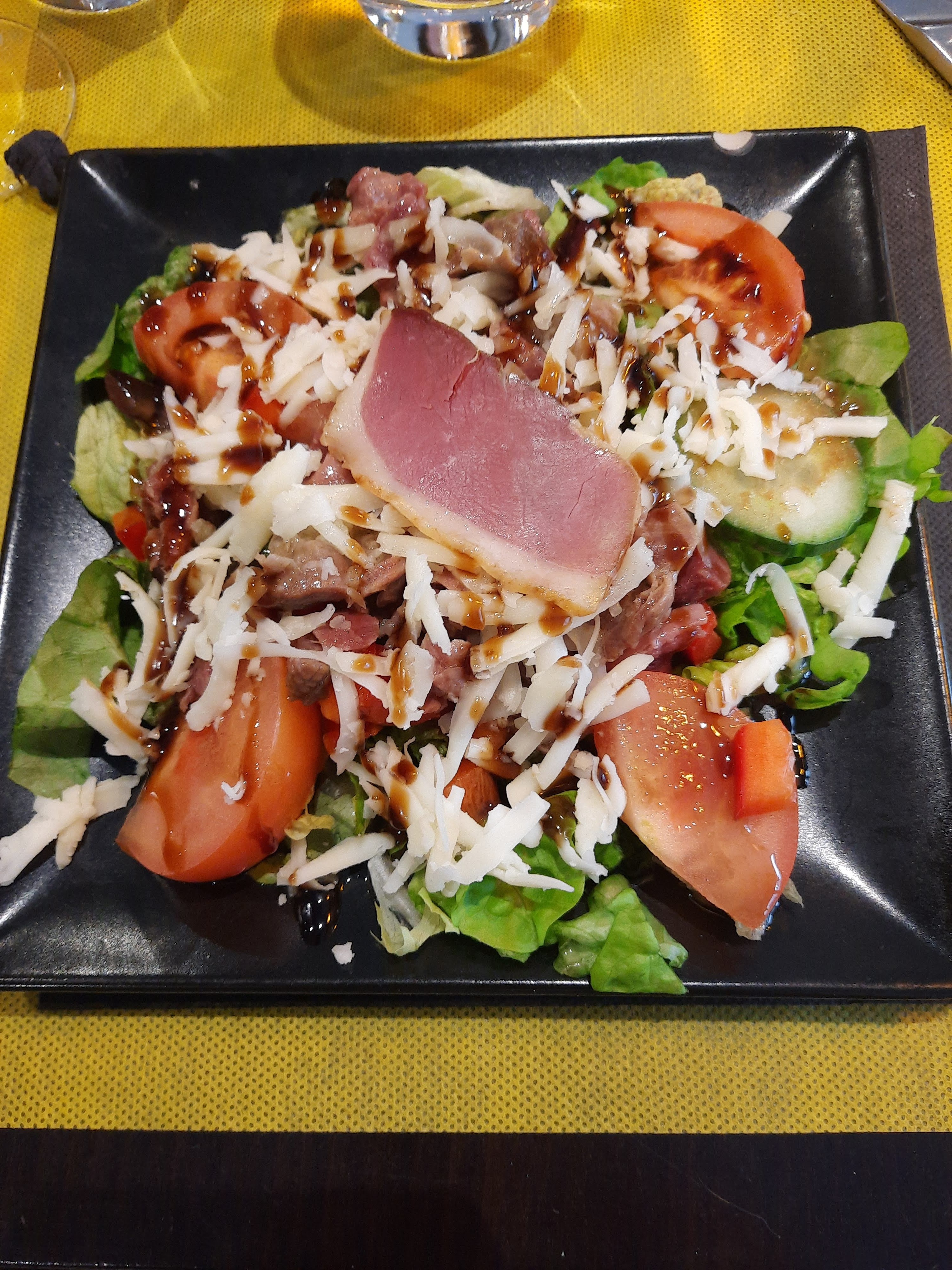 Bon. bonne présentation et copieux...cardre sympathique prix raisonnable..mon mari c'est régalé avec une entrecôte servi sur une grande planche avec pommes de terre salade ratatouille sauce et moi avec des chipirons