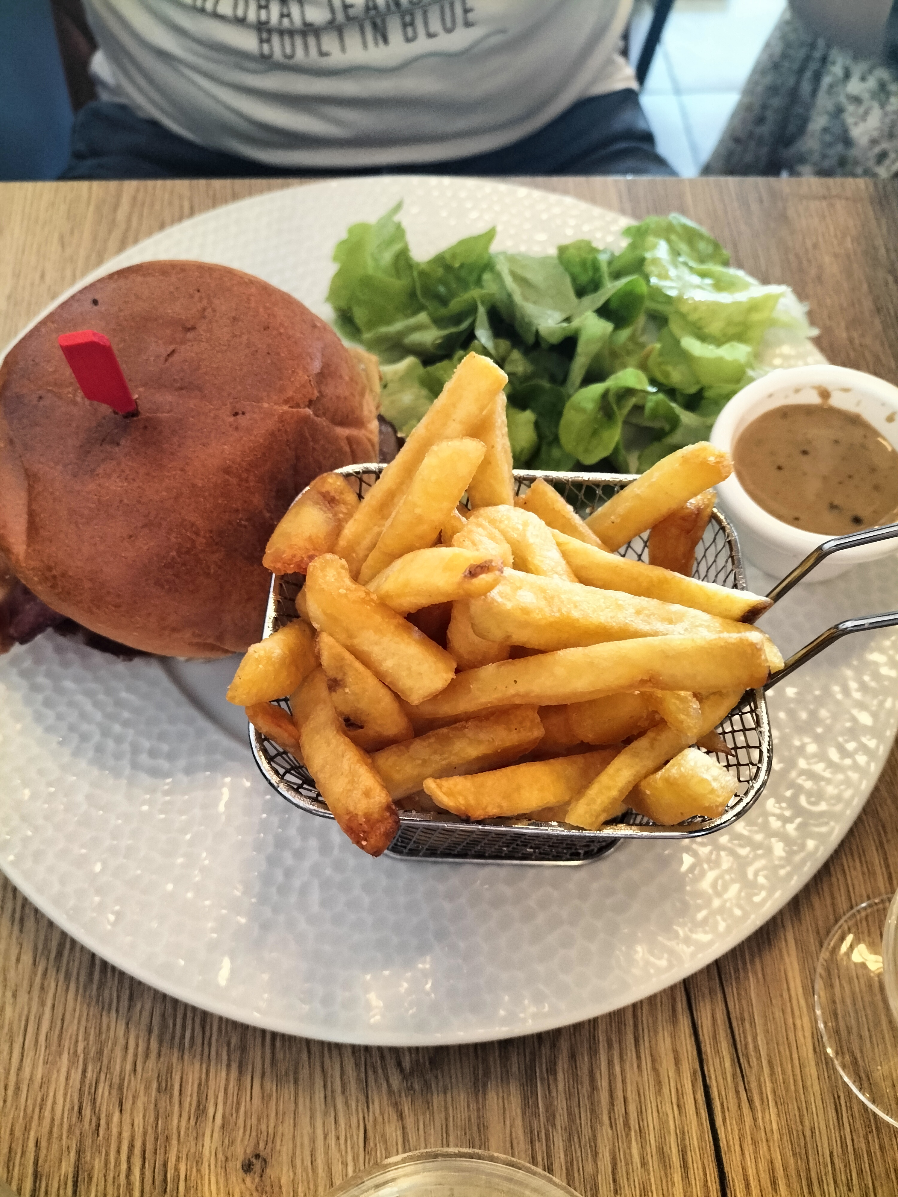 Sympa et bon petit bémol sur le service et sur le prix, de la sauce à fini sur les vêtements de ma femme, et 25 euros pour un hamburger (même copieu) , un café et un verre de vin, je trouve cela un peu cher