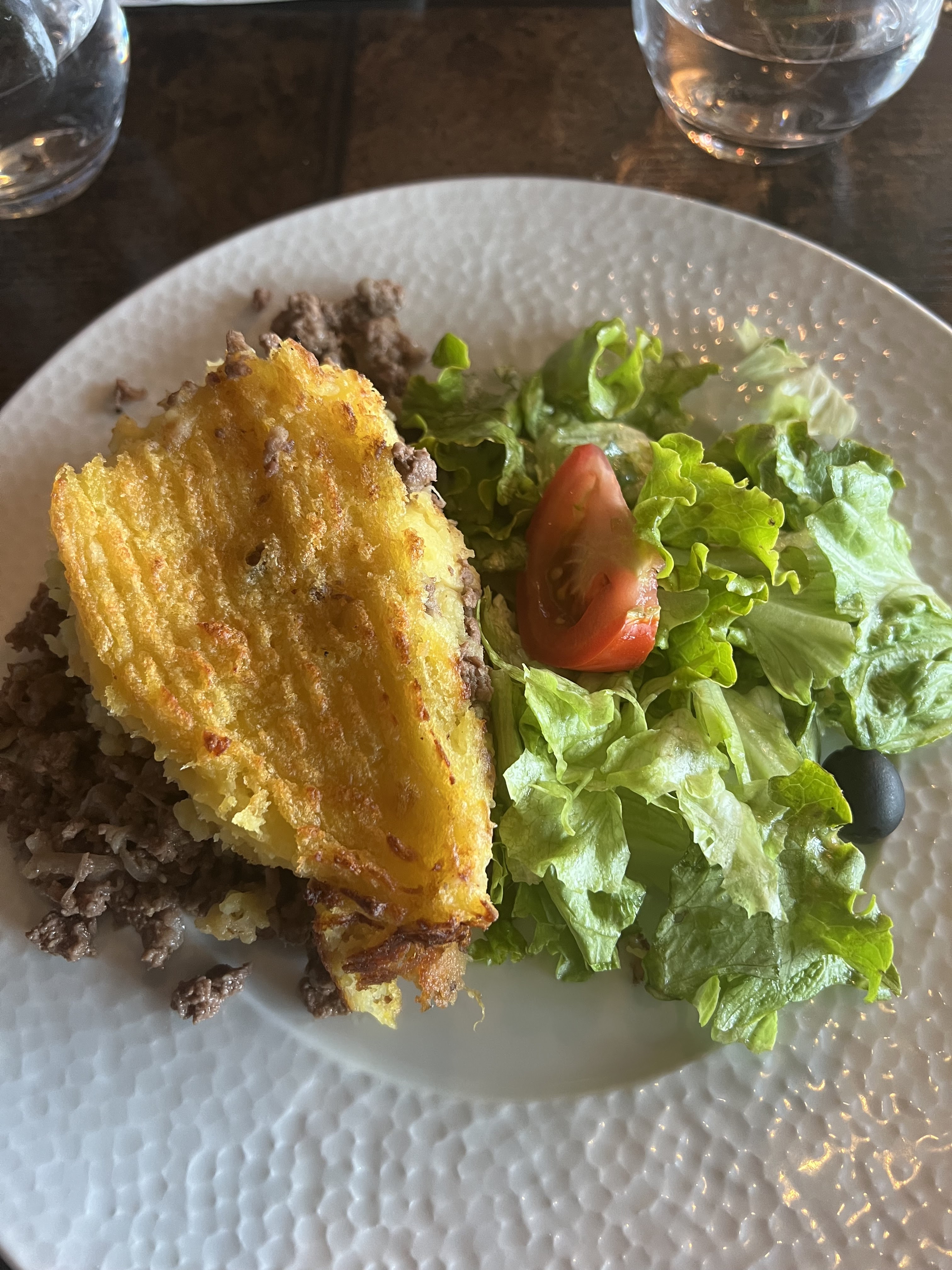 J ai beaucoup aimé ce lieu. J'ai pris salade de chèvre chaud avec café gourmand qui était très bien garni avec gâteaux fait maison 🏠 Nous avons très bien mangé. Service : rien à redire, je jeune homme très sympathique Déco très sympa. J'y retournerai sans aucune hésitation.