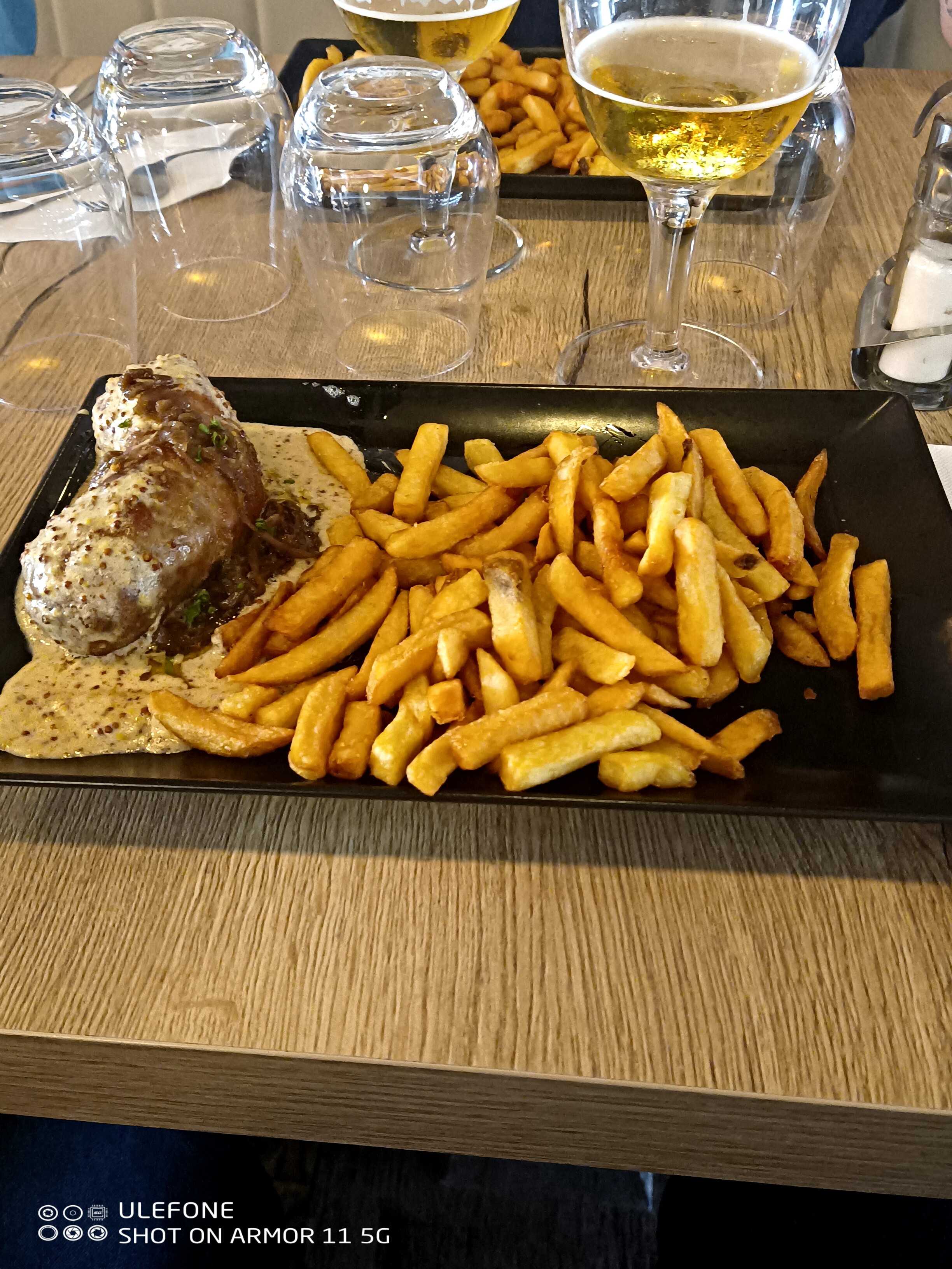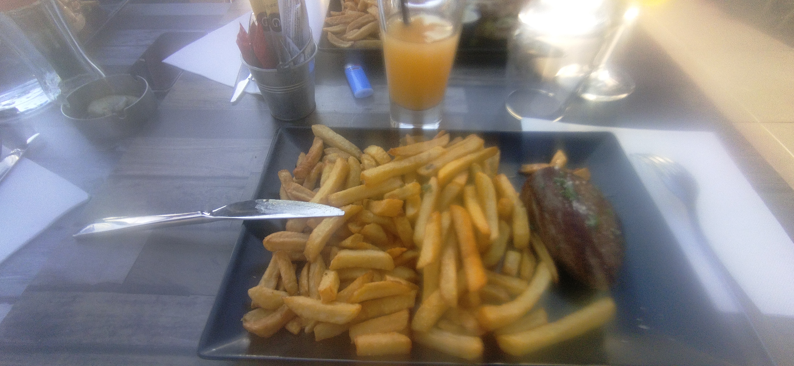 Musique un peu trop forte difficile de discuter … Service très bien Entrecôte de qualité mais accompagné de frites congelées ou recuit dommage