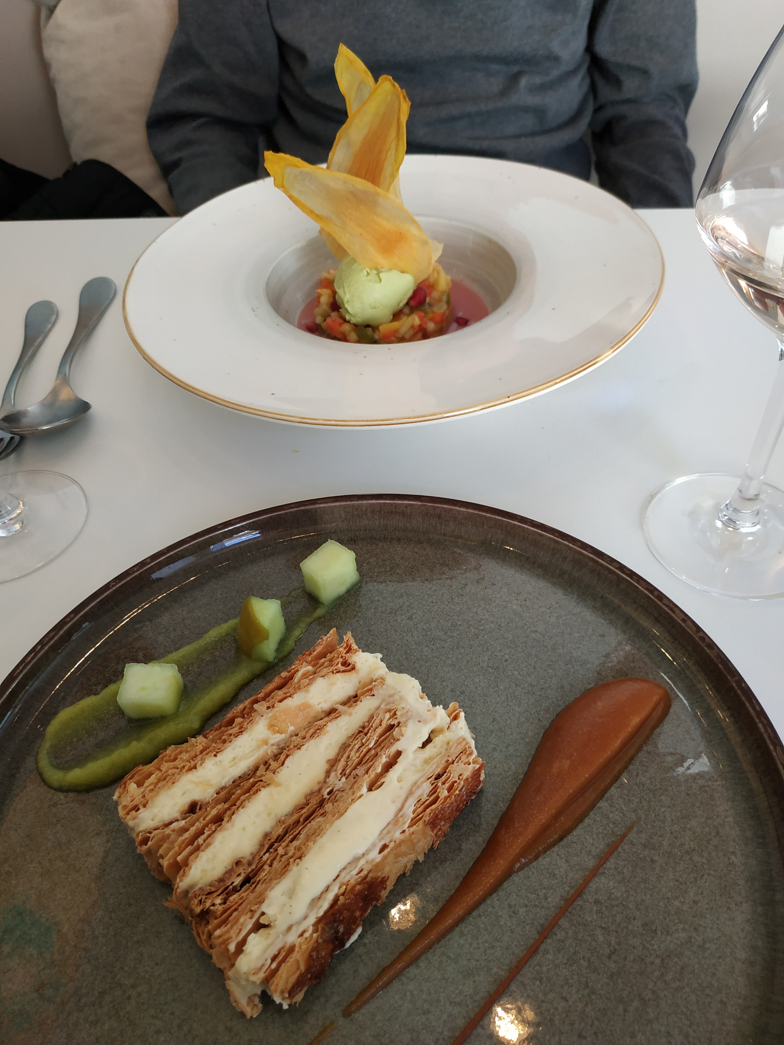 Satisfaction très moyenne.. Le veau était trop cuit et laisser le client repartir avec sa bouteille sous le bras sans proposer un sachet n'est pas digne de ce type de restaurant. Très beaux desserts. Payer en sortant et non à table n'est pas de règle en cette période de Covid.