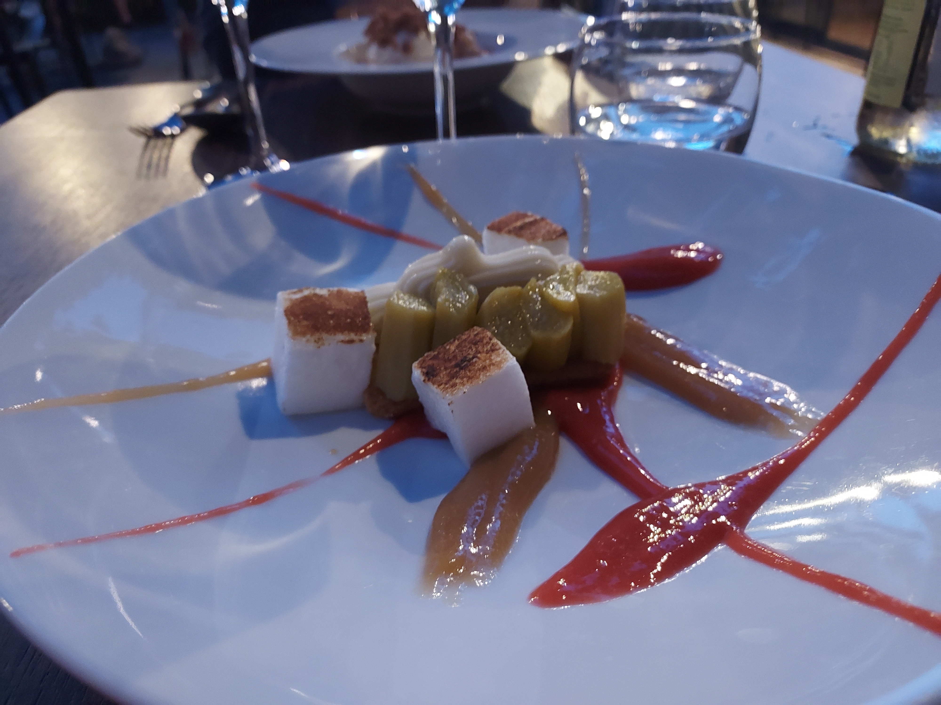 Repas pris en menu, bien moins cher qu'à la carte, mais sincèrement excellent ! Les légumes étaient spécialement bien cuisinés, autant pour l'entrée (rhubarbe + avocat + grenade 🤩) que pour le plat (ratatouille revisitée, excellente !). Dommage que vous ne proposiez pas de plats végétariens ! Concernant le service, j'ai mis 4/5, car bon, mais les explications étaient dites bien trop rapidement (on a à peine compris les ingrédients du mocktail), et faites de façon un peu expéditives.