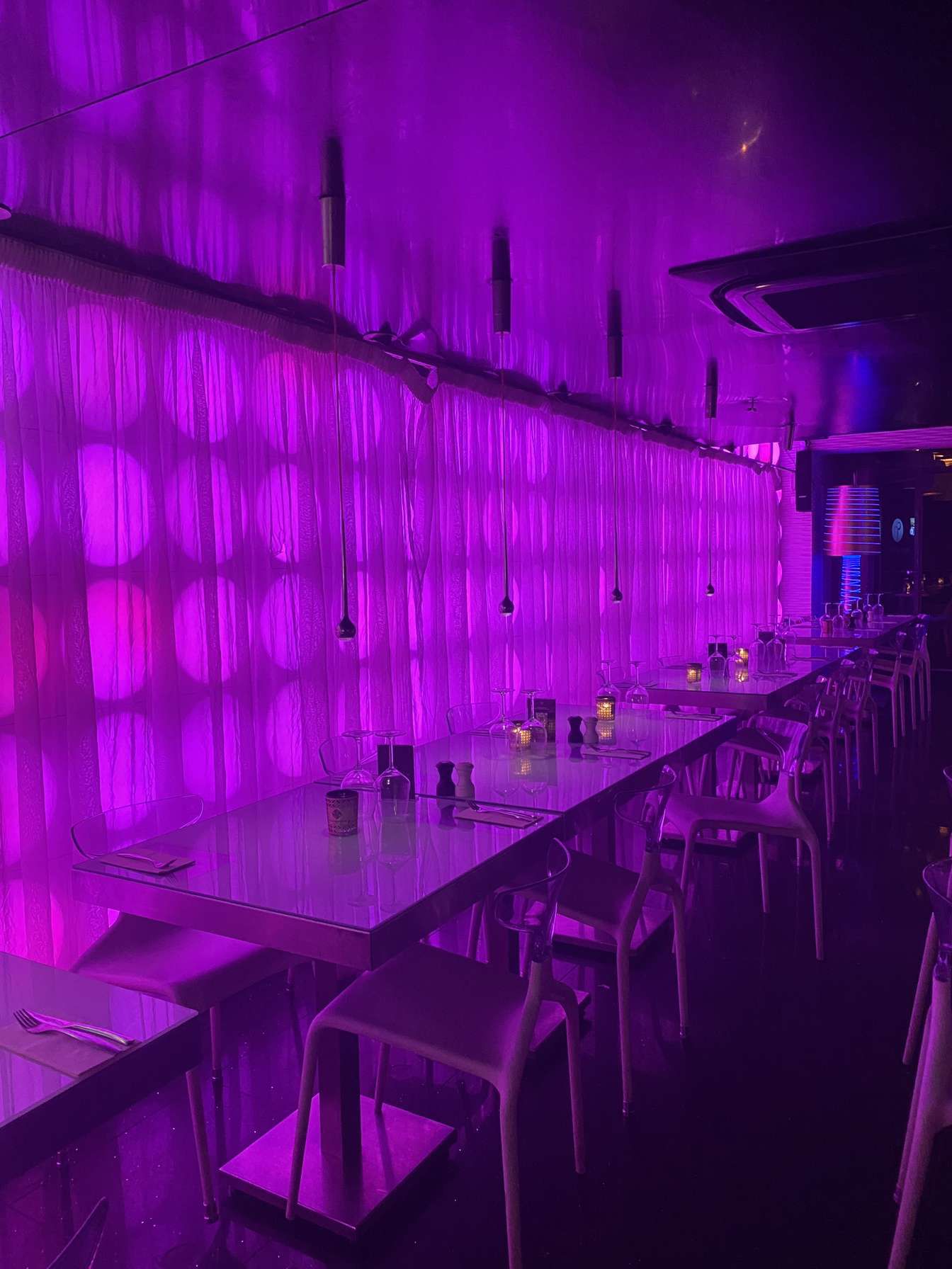 Première fois dans ce restaurant. Serveur peu aimable qui roule des yeux quand on demande un carafe d eau. Payée 50 euros pour avoir une intoxication alimentaire avec une souris d agneau sans goût, revoir l hygiène et les recettes. Ambiance néant pas de DJ juste un fond musical. En fait tu paye la déco. A fuir