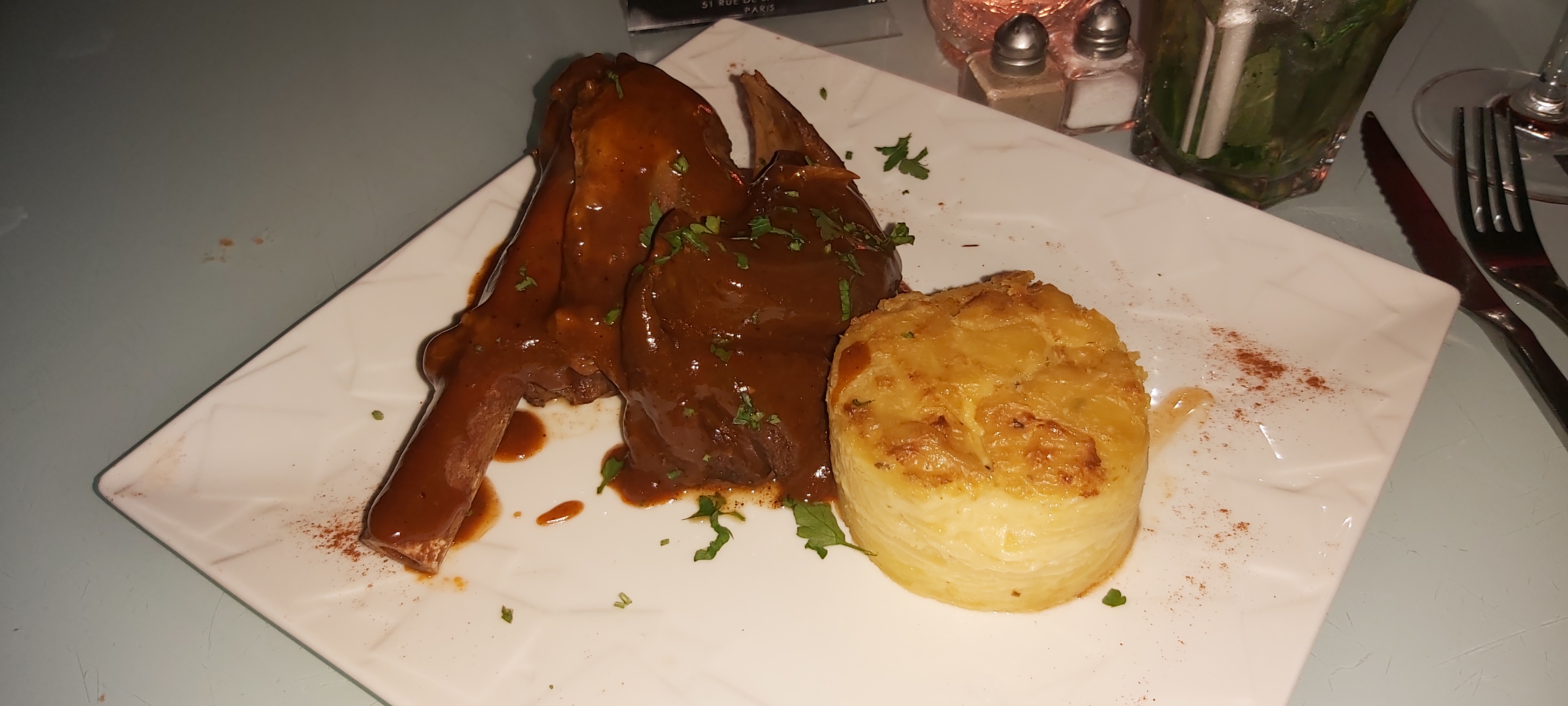 Souris d’agneau et gratin froid , Malgré le fait ça été renvoyé en cuisine ! Tout ça pour que le plat sois toujours FROID et sans goût , j’ai même pas manger mon assiette et mes copines aussi