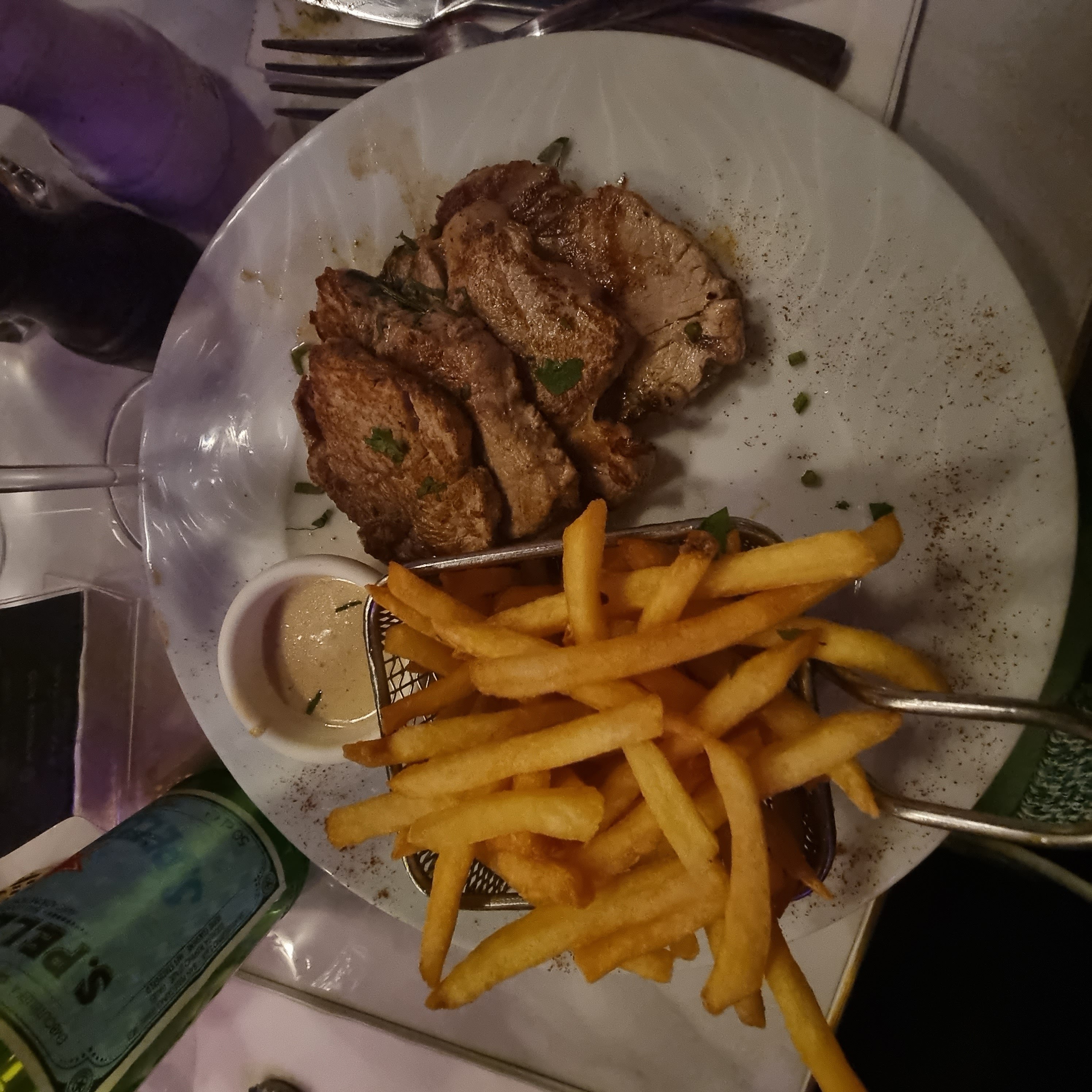 Assez bon restaurant dans l’ensemble, toutefois quelques points restent à désirer : - Les plats sont assez bon et généreux, malgré la qualité des frites qui est tres décevante, les mêmes qu’au Mcdo. Des frites maisons auraient été plus corrects pour le prix. -bonne ambiance -personnel sympathique et très serviable