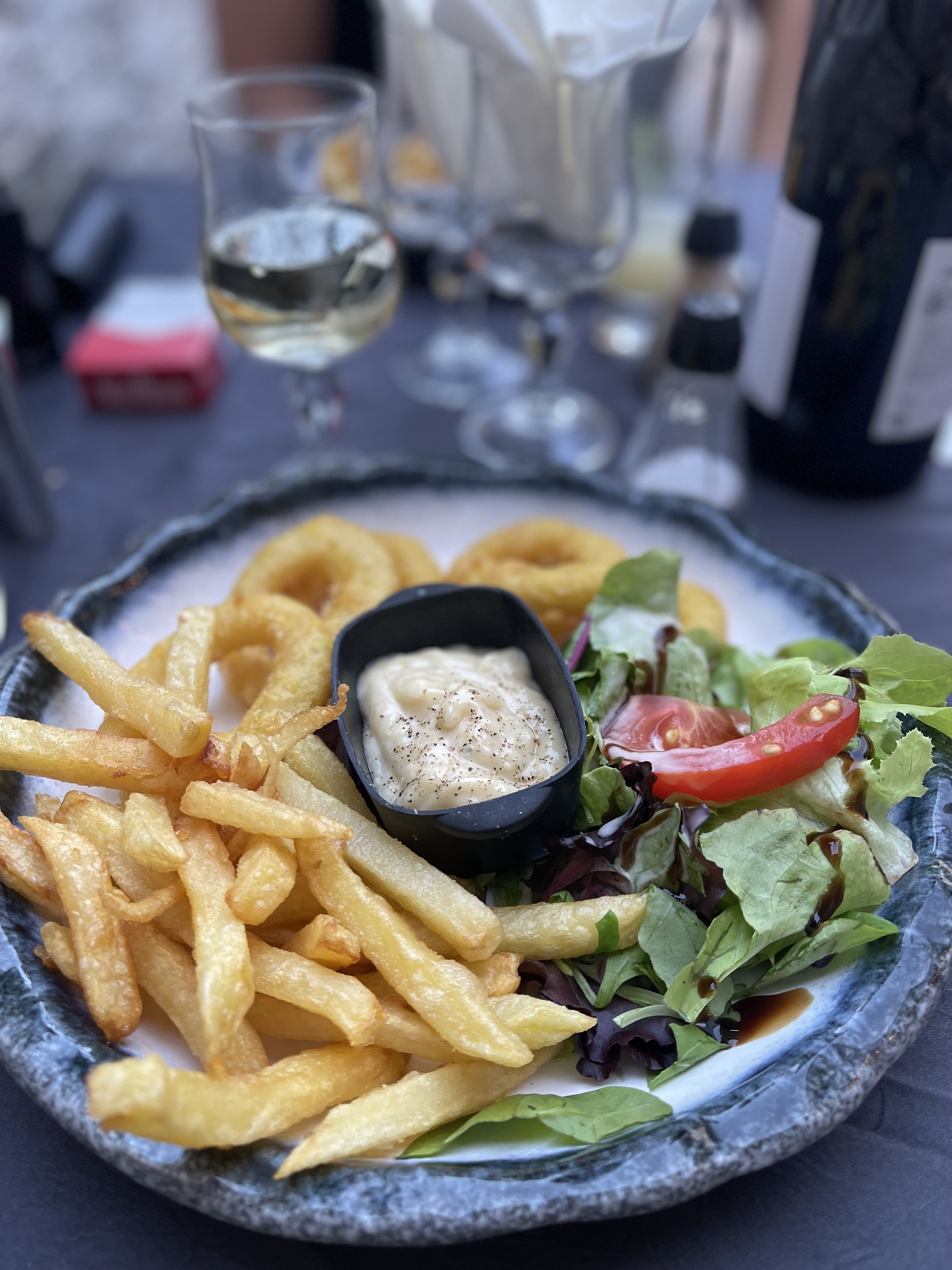 Restaurant fabuleux avec une très bonne nourriture et un très bon service, un serveur si gentil avec un joli sourire et parlant un peu anglais ! Nous avons eu une pizza pour commencer et le poisson du jour ! Des calamars ainsi que les pâtes du jour une belle raviole de légumes. Leur salade maison était parfaite, tout comme leur vin maison. Nous y retournons aujourd'hui pour leur hamburger qui avait l'air incroyable.