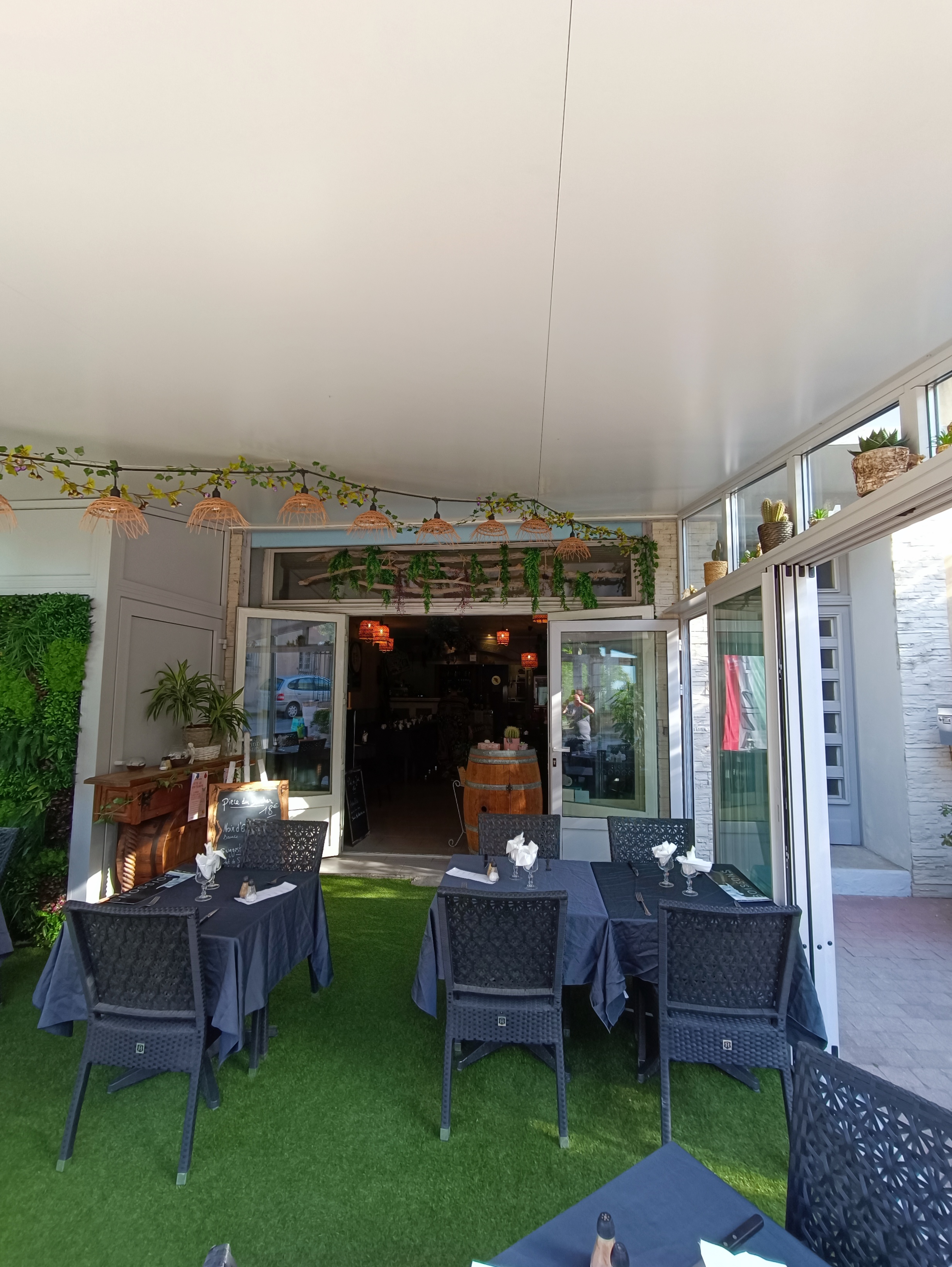 Accueil chaleureux. Menu du soir en 3 services: délicieux et digne d'une cuisine provençale. Budget moyen 25 EUR. Très jolie déco, d'inspiration italienne.
