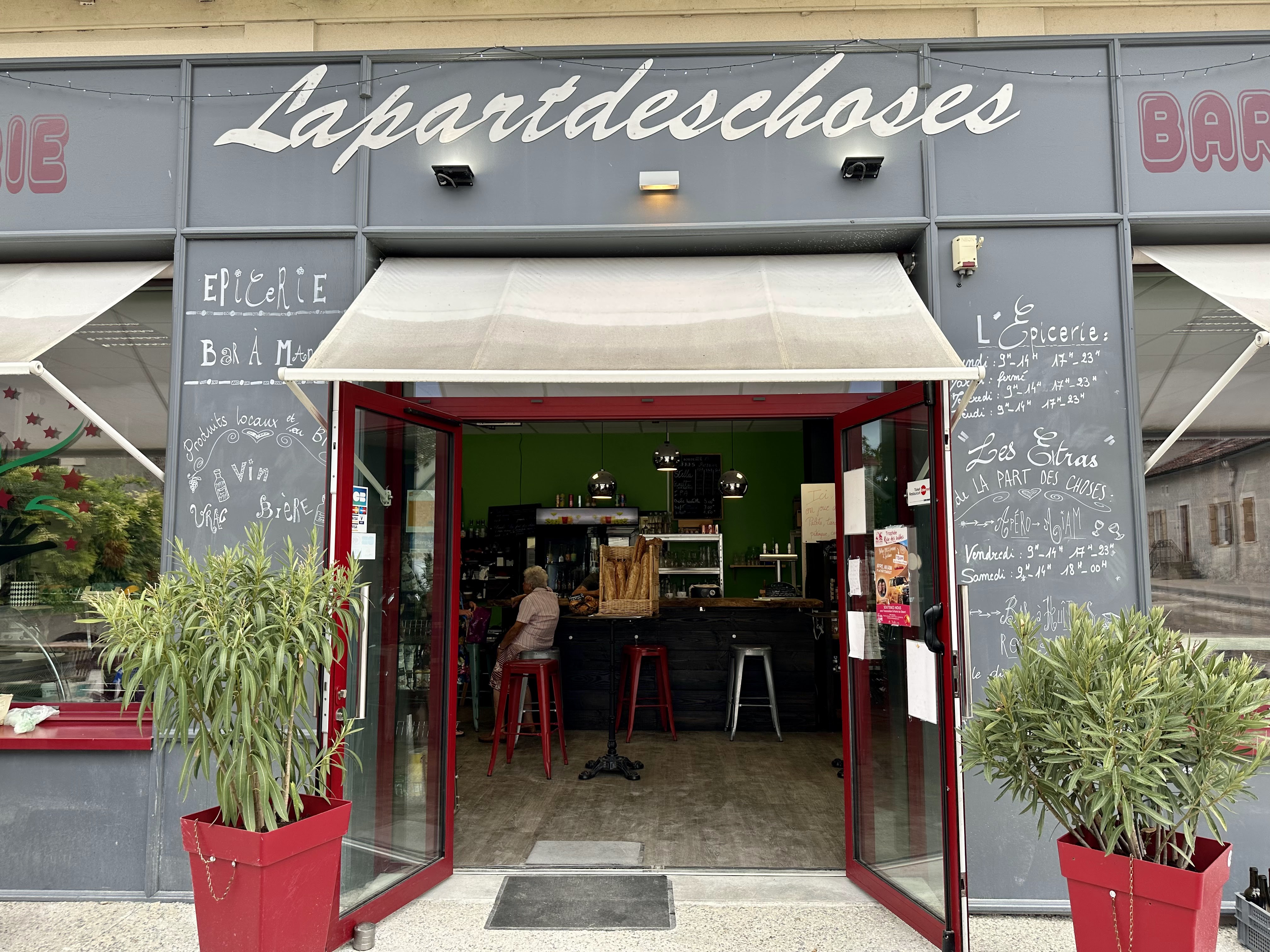 Un village perdu qui a la chance d'abriter cette jolie-epicerie-bistro-resto... Ambiance, déco, accueil. - Le hasard d'une balade nous a guidé vers leoville ...14h .. ..nous avons savouré un repas ( magret, gratin dauphinois maison.....,) .. . Et nous y sommes revenus le lendemain ( tartare de courgette à la feta, calamars). Et quelle belle mise en valeur du côté epicerie , aux produits joliment présentés ( même de l'agar agar ....tout l'essentiel) Bravo. Un établissement comme La Part des Choses redonne vie et gaité.