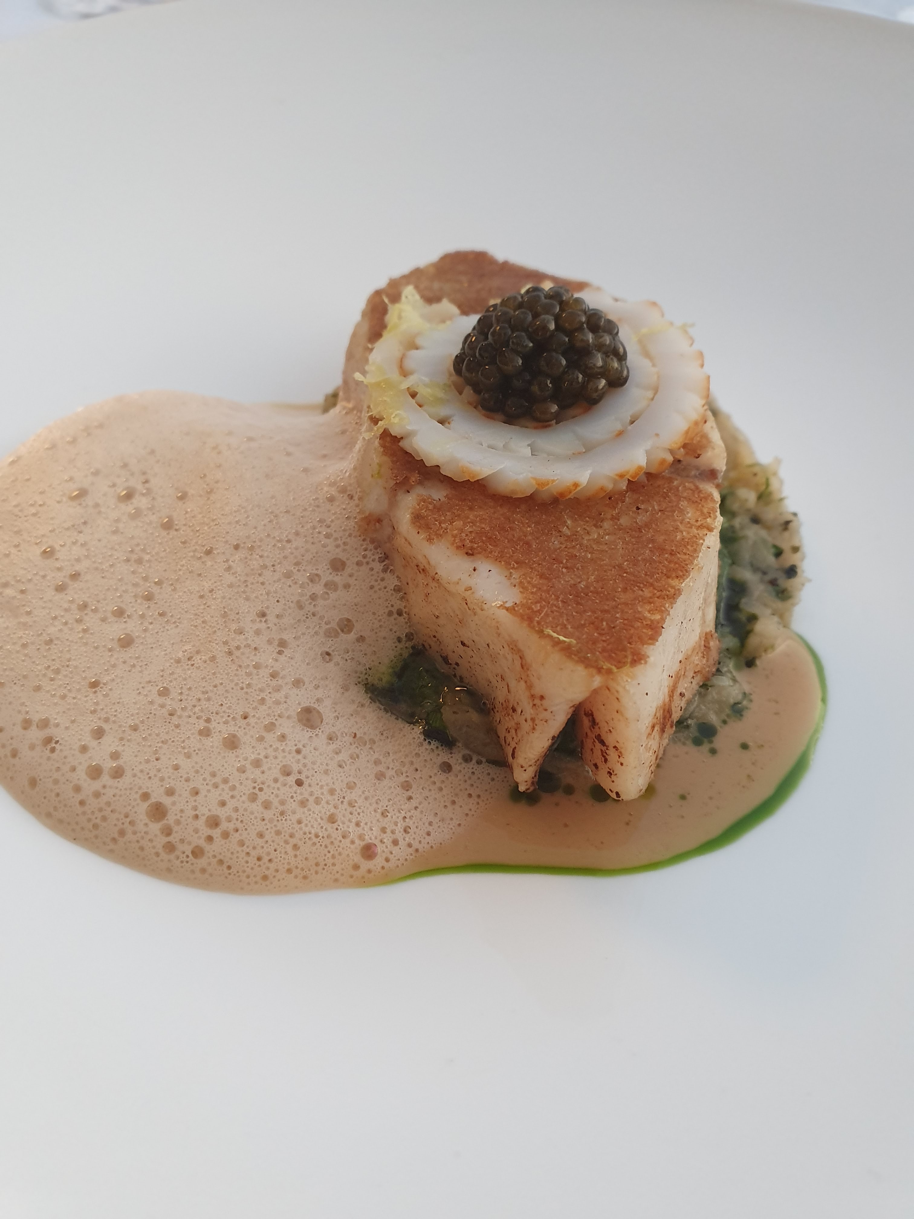 Sublime! Voilà comment je résumerais la soirée en un mot. Table sur la belle terrasse avec vue sur la baie. Nous avons choisi le menu 'Mer et Patrimoine'. Cuisine très savoureuse et raffinée. Un grand compliment également pour le service au top 👍 À mon avis, cela vaut vraiment une deuxième étoile Michelin.