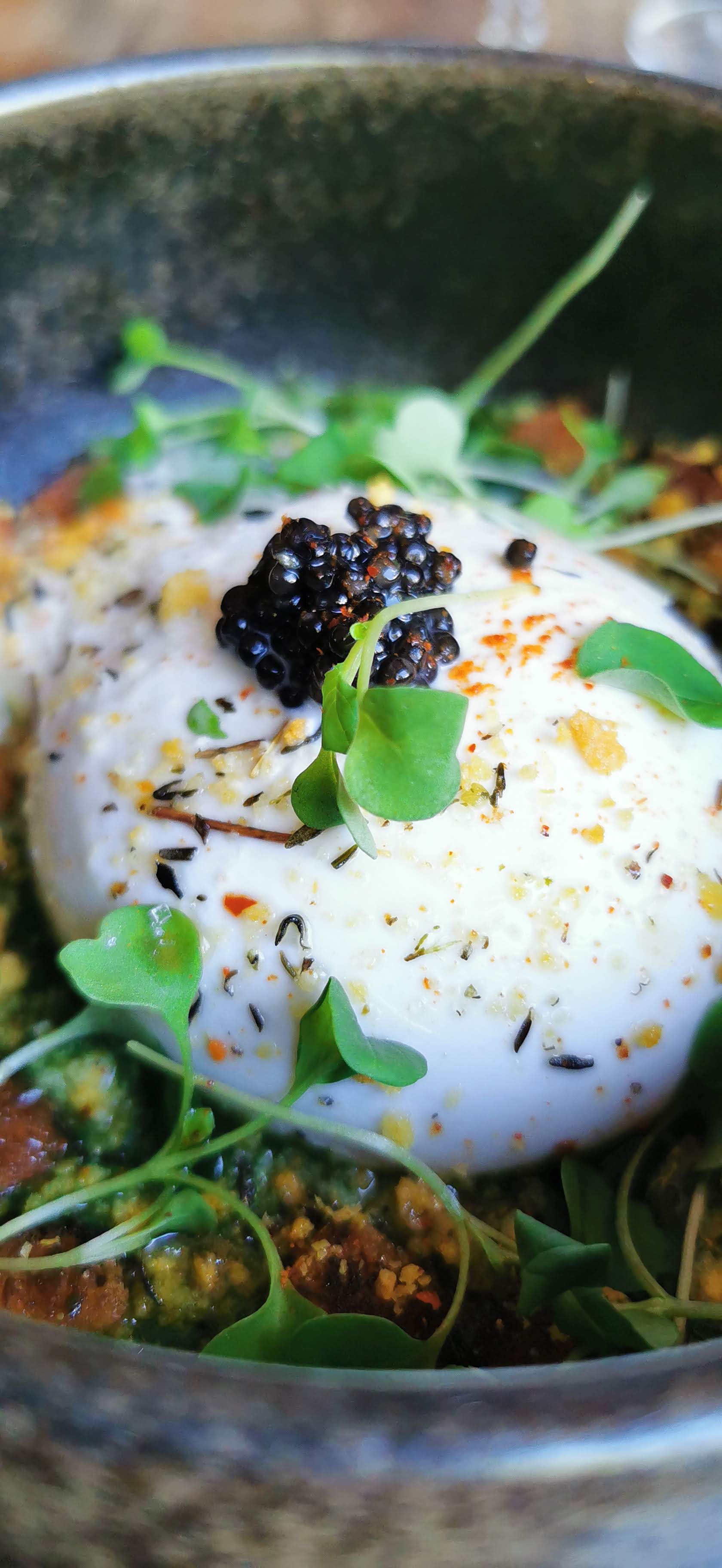 Accueil et service chaleureux, prévenants et efficaces. On est bien installés sur la terrasse en bord de Seine. Les belles assiettes arrivent : magnifique présentation, associations et saveurs originales: c’est beau et bon 😍😋 Mickaël Meziane virevolte de table en table pour faire partager sa passion. Enthousiasme et énergie communicative. On passe un très bon moment !
