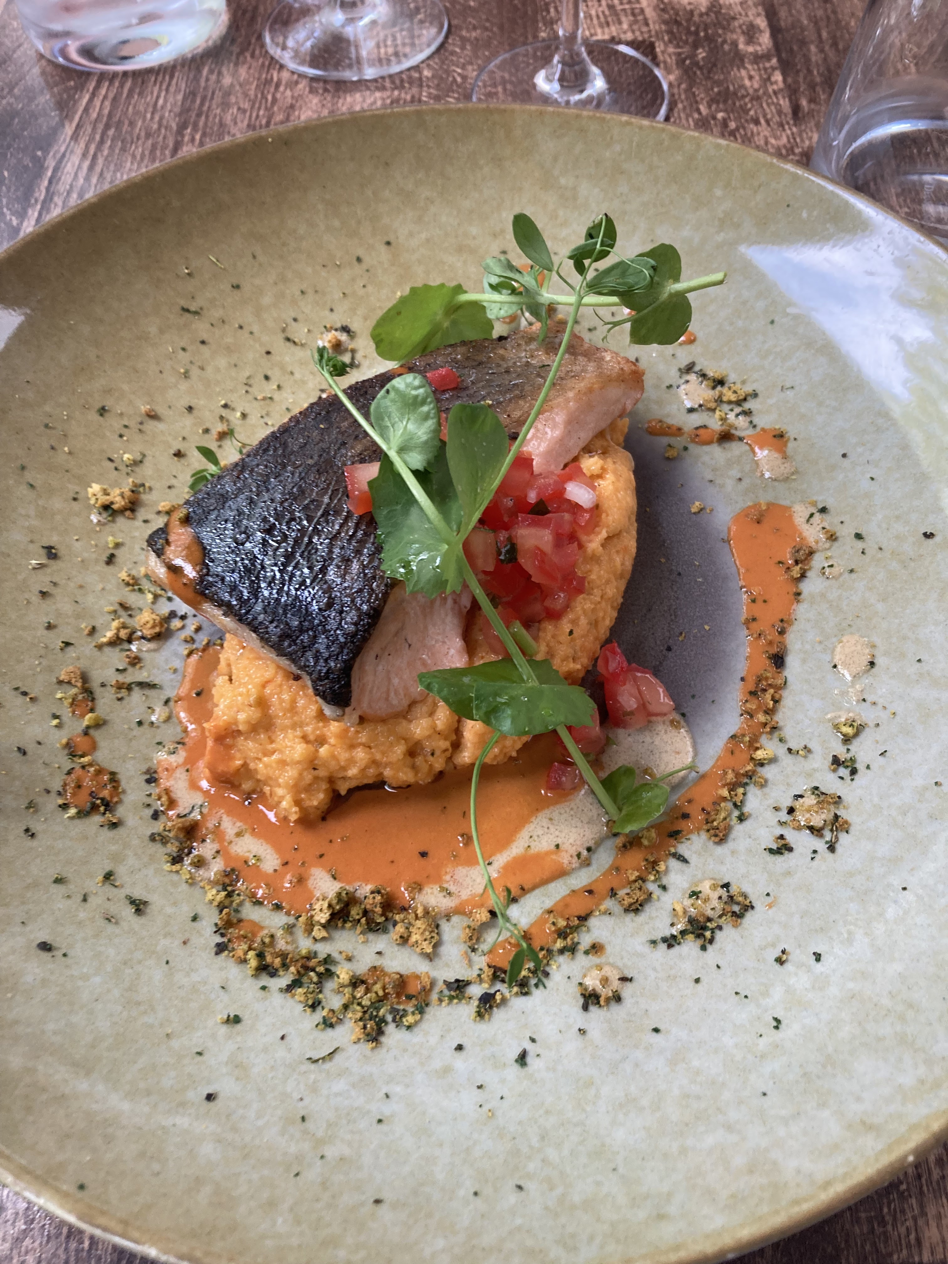 Bon restaurant : le cadre est agréable, les assiettes sont belles et originales et le service efficace. Pourquoi 3 étoiles ? D'abord pour un rapport quantité/prix notamment sur les entrées qui laisse à désirer. Et surtout pour la tarification un peu hors sol en particulier sur les vins : 26 euros le verre de vin, est ce bien raisonnable...?