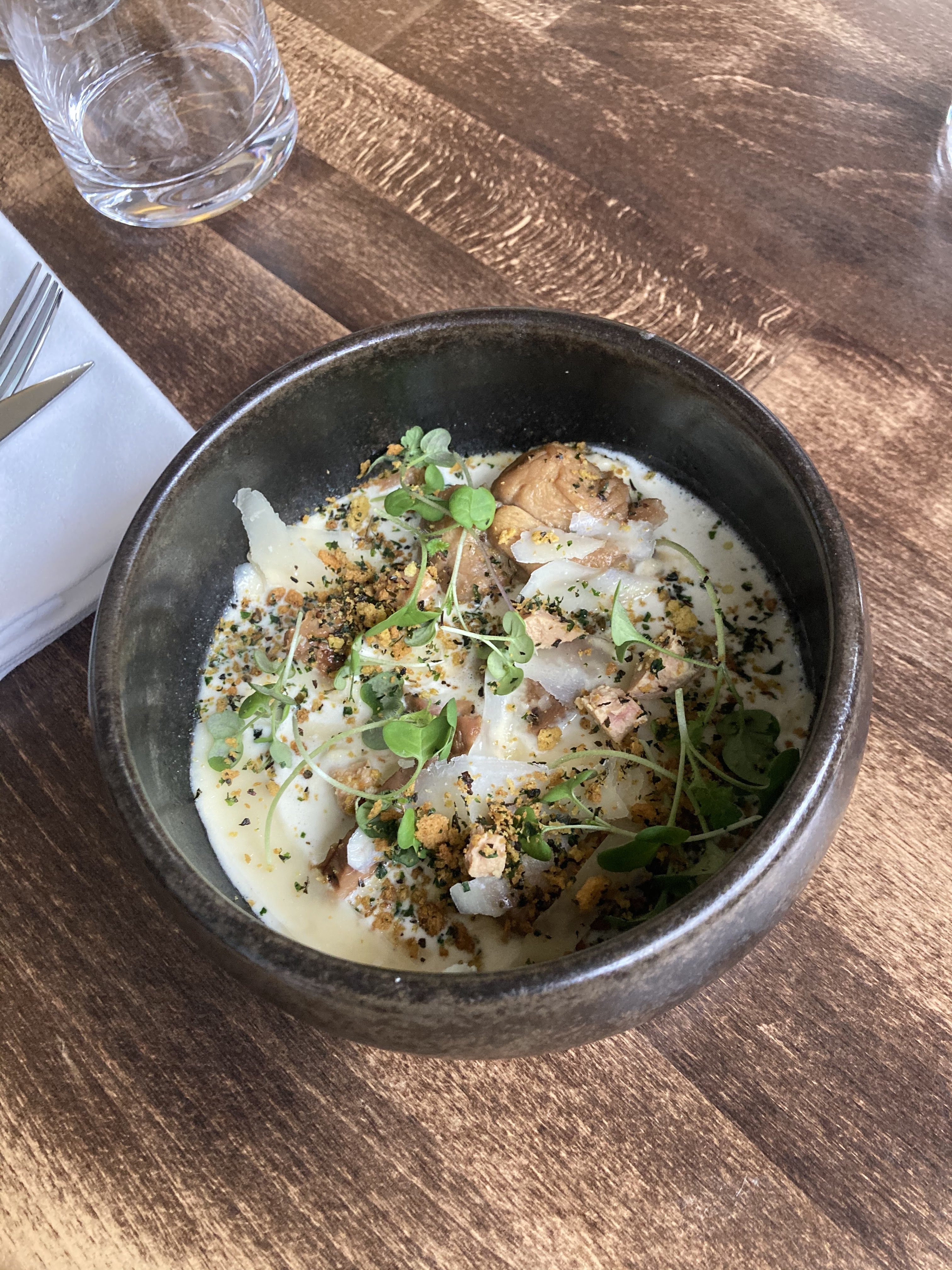 Lieu cosy, décor et vaisselle pensé et très beau. Les plats sont vraiment travaillés et très bons (et c'est beau). Même le chef viens vous voir en fin de service on a vraiment apprécié. Pourquoi une étoile en moins ? Pour la salade césar (aucun ingrédient extraordinaire) à 25€ euros c'est exagéré.