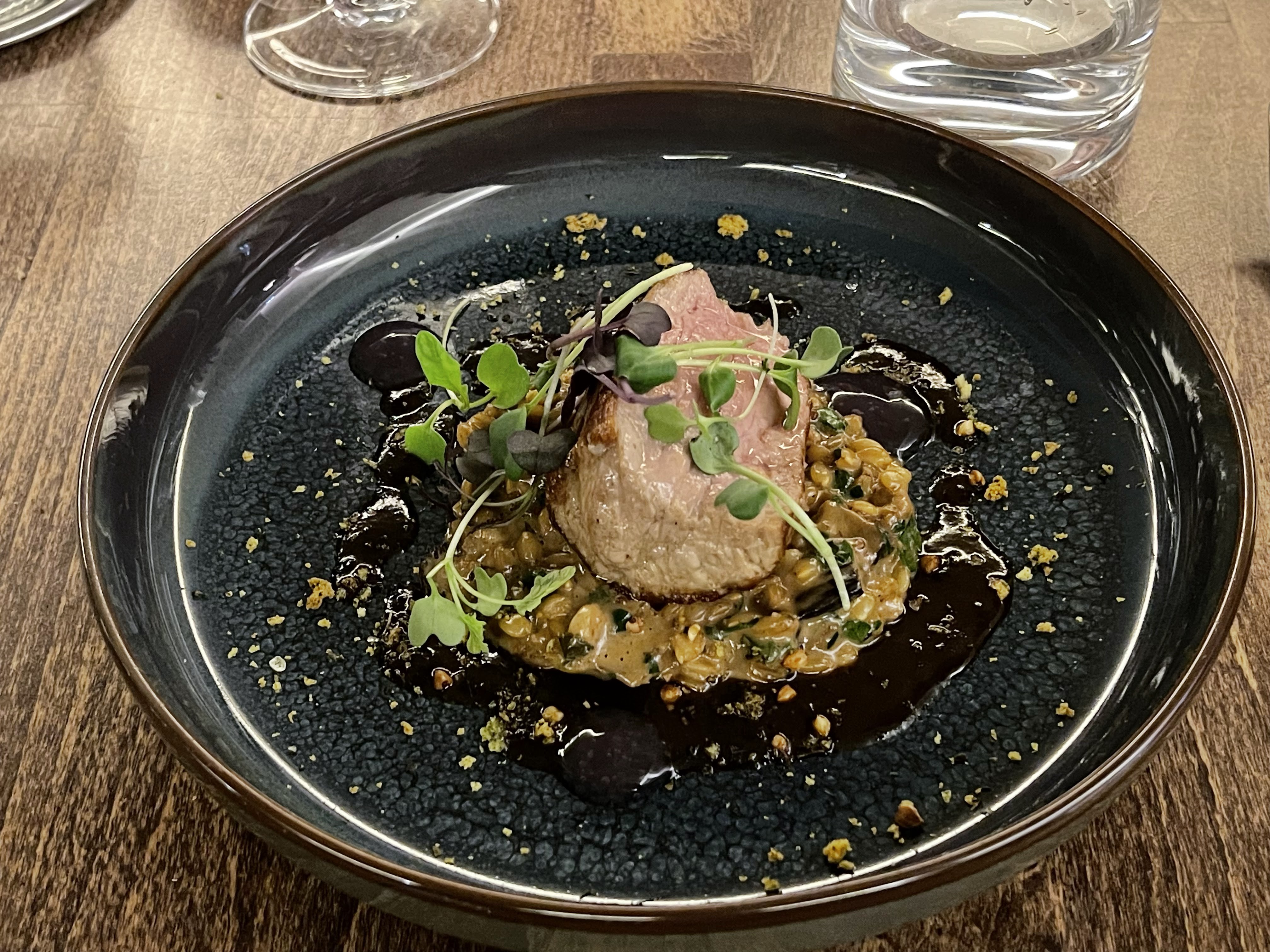 Une très belle adresse On débute par un fondant de betterave très doux. Le poulet est très tendre avec du quinoa incroyablement fondant. Le siphon chocolat est bon mais trop de caramel. Service un peu lent mais serveurs très sympathiques. En revanche ne vous fier pas au menu lis en ligne qui n’est pas à jour.