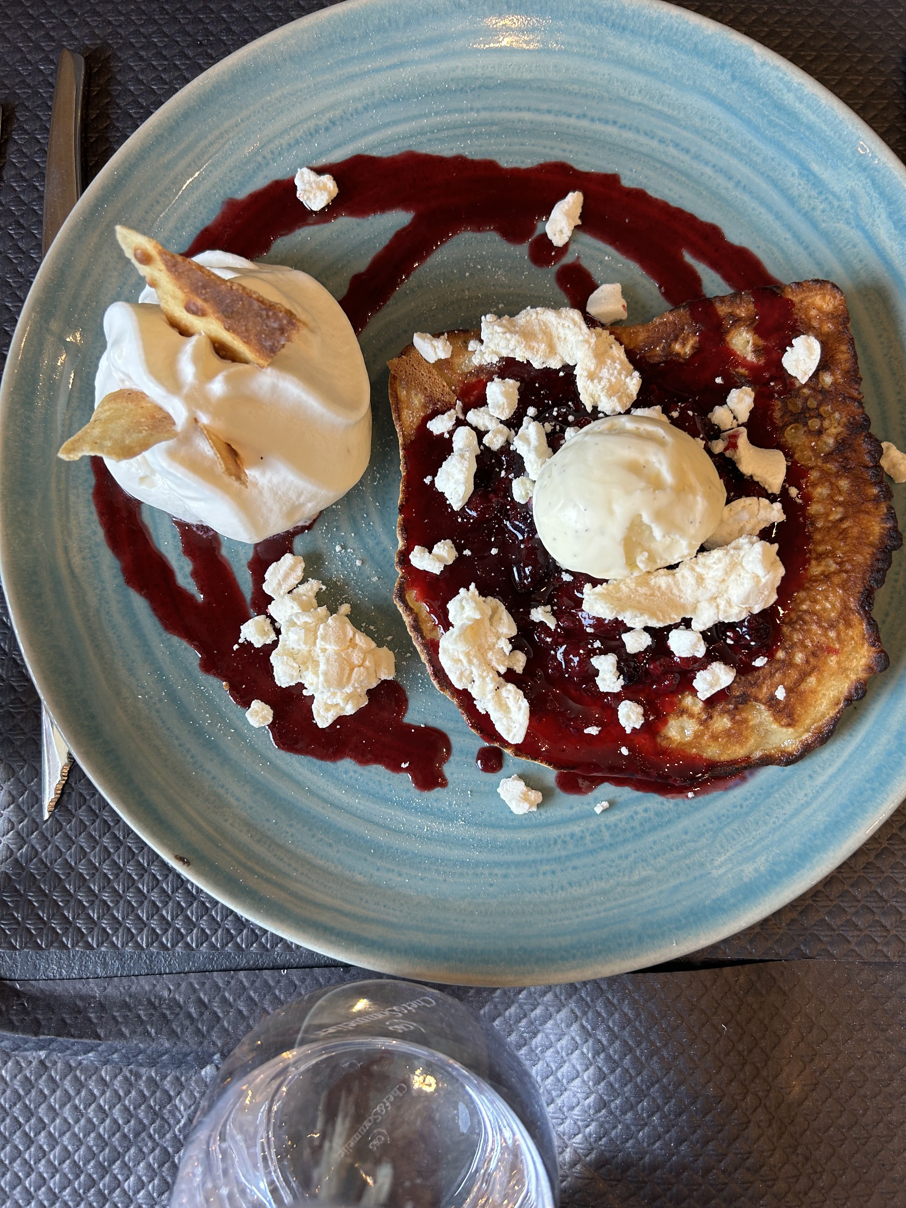 Une galette végétarienne très savoureuse et généreuse, une crêpe poire belle Hélène délicieuse, bravo au chef. Super service et petite mise en bouche offerte à l'apéro, tout ça avec des prix abordables ! Je recommande.