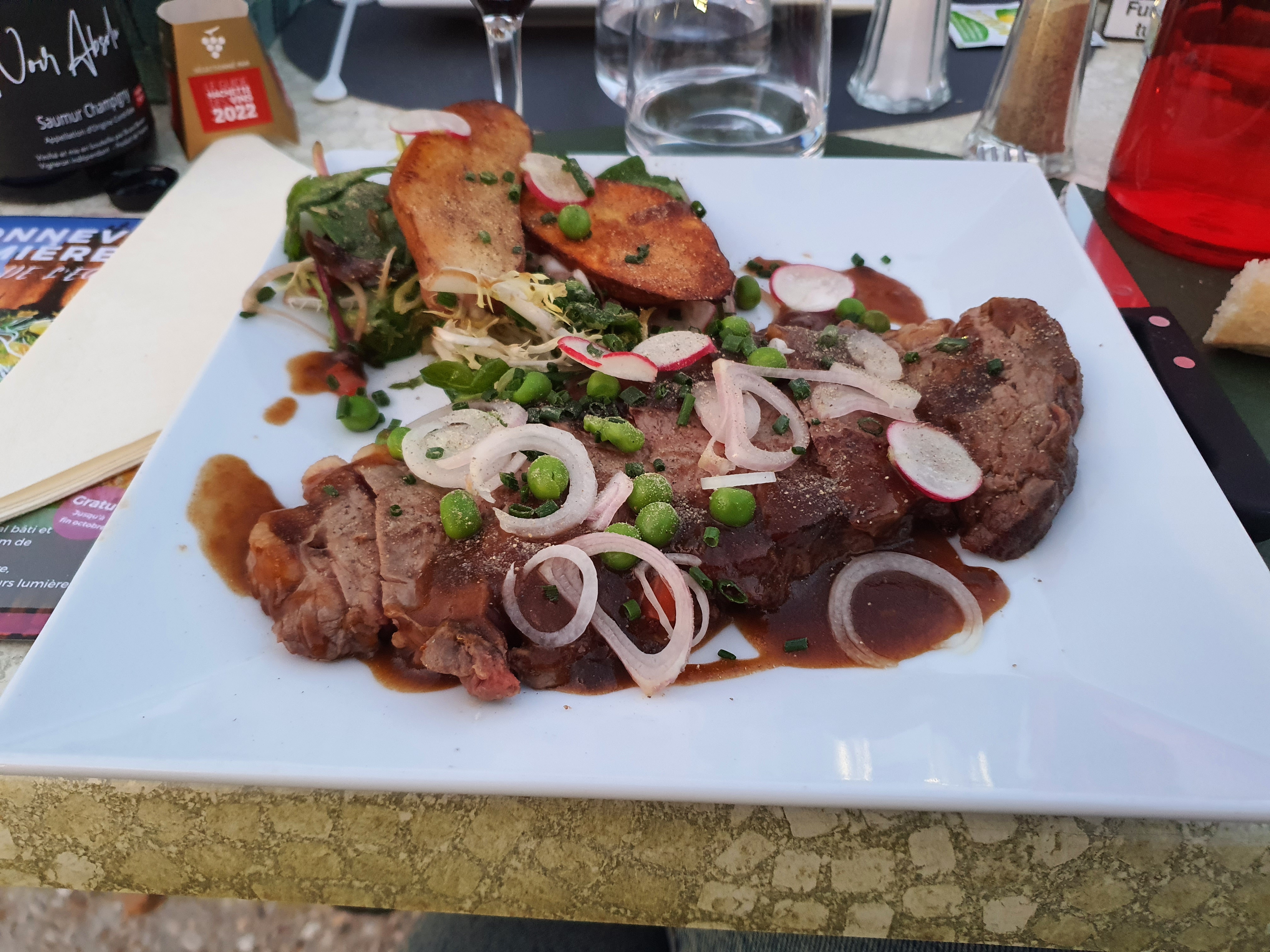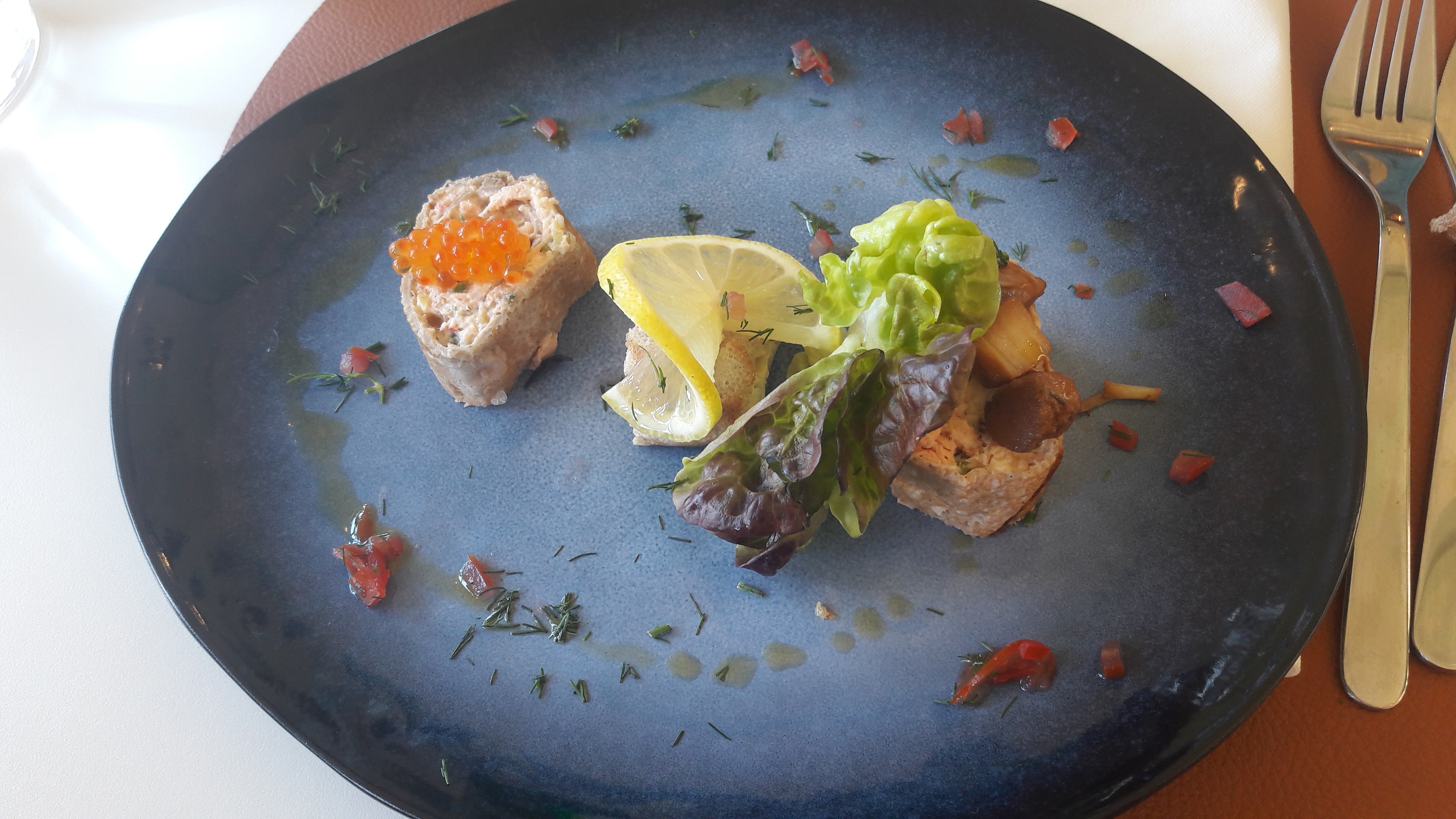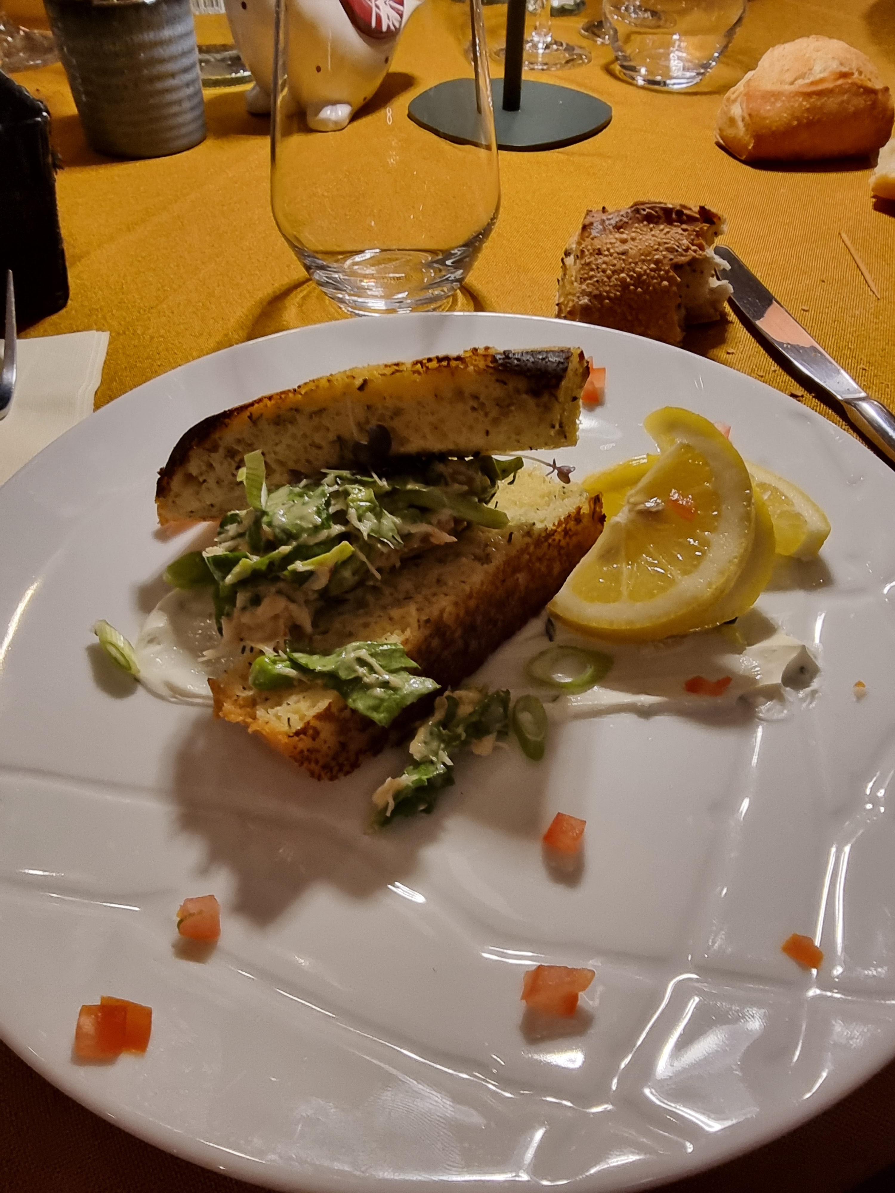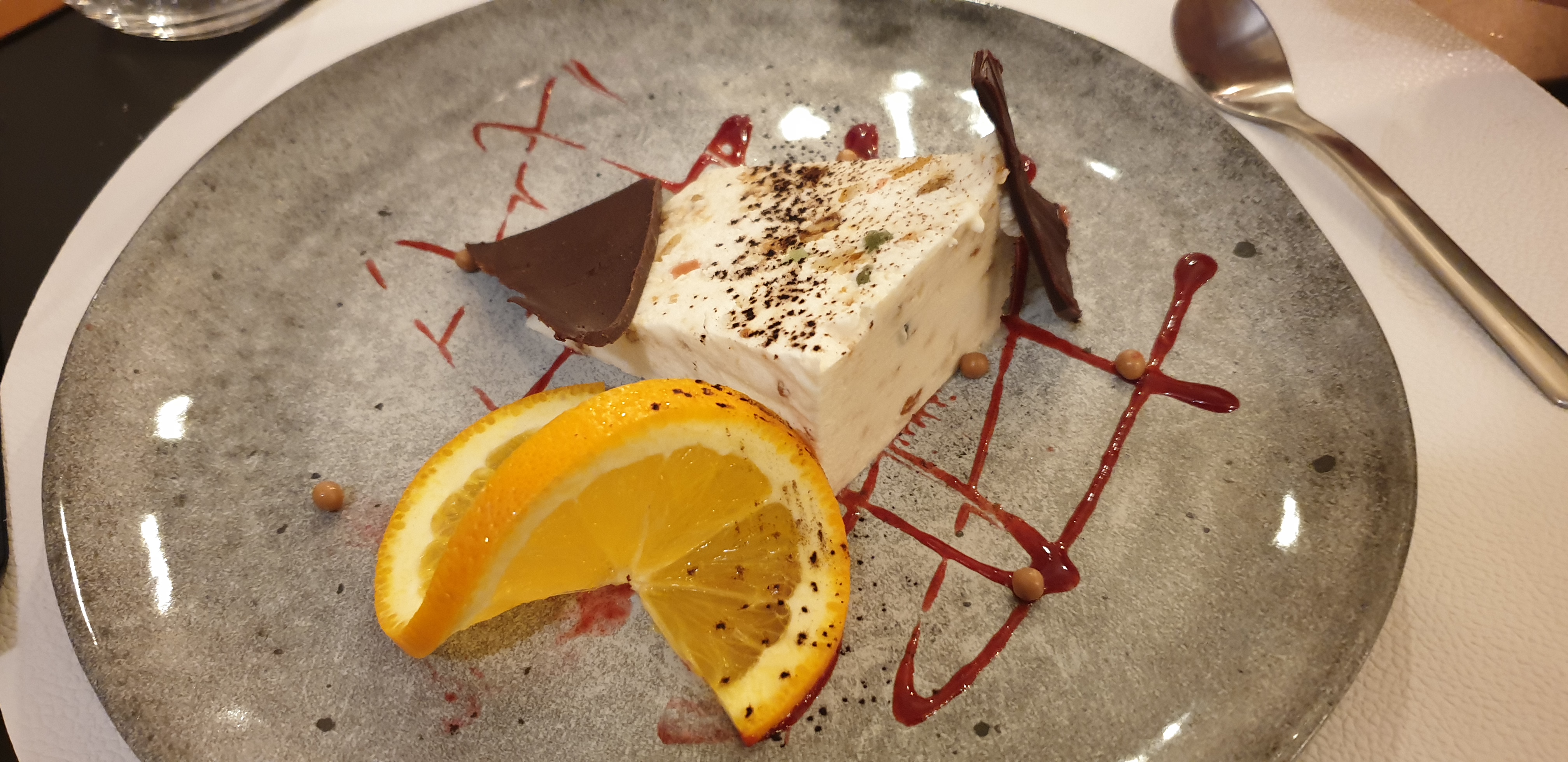Ravi de trouver ce restaurant à Bonneval, intérieur contemporain et cuisine moderne et légère, joliment présentée et servie par une charmante serveuse, exactement ce dont deux voyageurs fatigués avaient besoin.