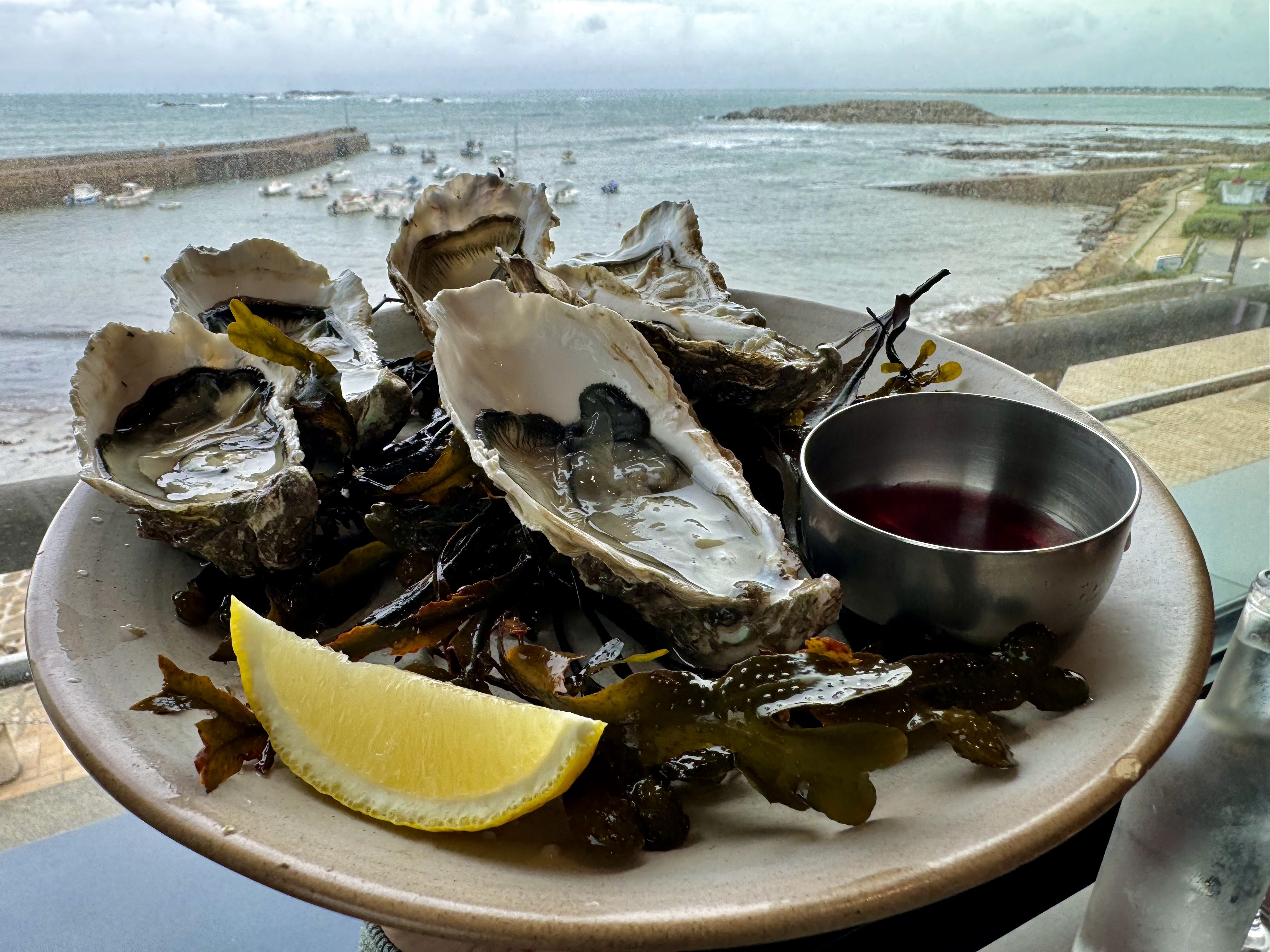 Excellente expérience avec un grand groupe, plateau de fruits de mer généreux. Vue imprenable pour le coucher de soleil sur belle île. Bon service et vin agréable Je recommande!