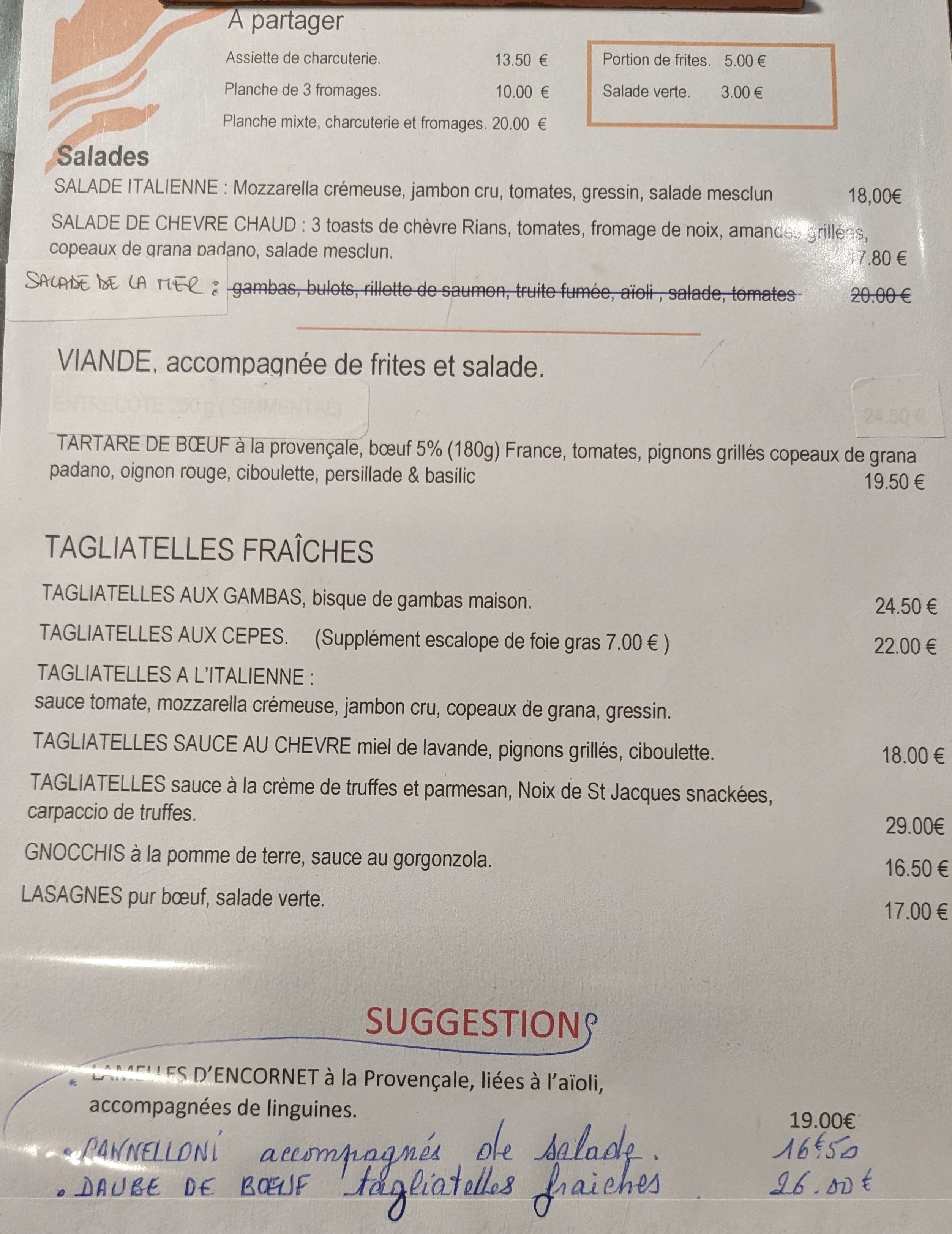 Une vrai découverte. Partis pour manger des pâtes nous avons découvert un restaurant à la cuisine maison avec une carte alléchante. Les raviolis à la brousse excellents. Et alors la planche mixte gambas grillés, St Jacques, flan de cabillaud, fleurs de courgettes frites, riz, salade tout simplement splendide. Un tiramisu maison. Bref une très belle soirée pour un prix très raisonnable. Merci à la cuisinière.