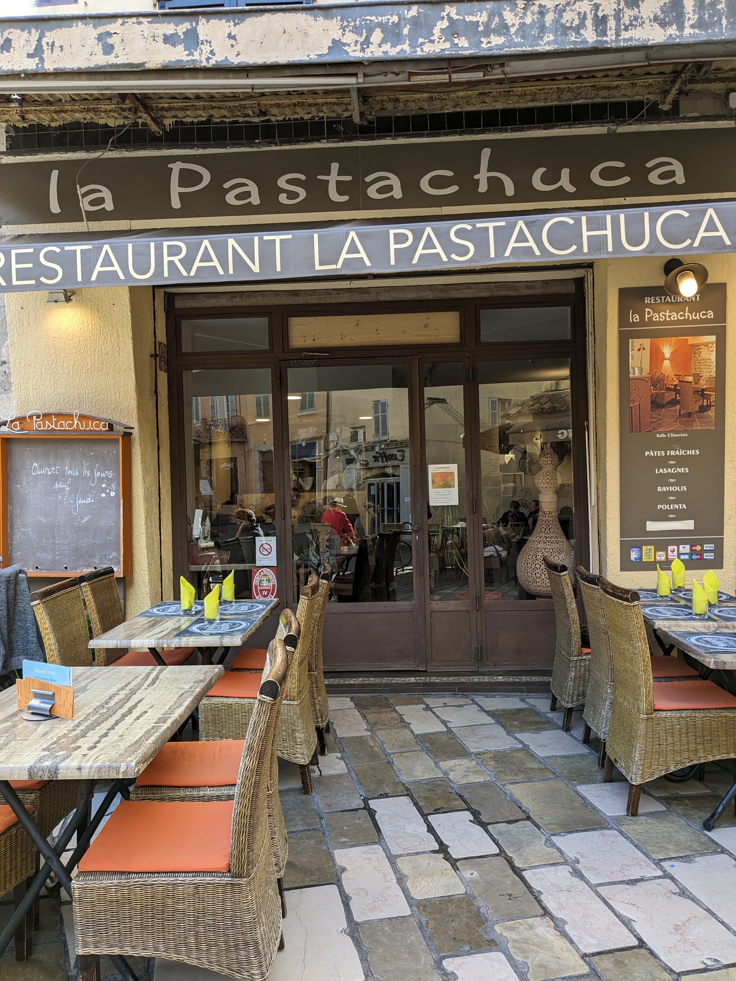Pastachuca le nom n est pas très inspirant mais la cuisine très inspirée. Une place qui ressemble à un piège à touriste et un serveur qui nous aborde en toute discrétion sur la plus petite terrasse de la place hélas ;-) Nous sommes 4. On commence par un petit apéro avec la suggestion d un Morito basilic au goût très original et réussi et des cocktails sans alcool pour les enfants. Finalement nous décidons de rester manger. Et nous avons pas été déçu : de la lasagne pur bœuf au pâtes mozzarela bufala et sauce tomate fraîche, aux pâtes aux pistou à la salade italienne ...que des produits frais et une cuisine très fine raffinée...De plus les serveurs sont très discrets et efficaces. Une excellente surprise et donc le restaurant italien à ne pas manquer si vous vous rendez dans le centre du vieux Hyères