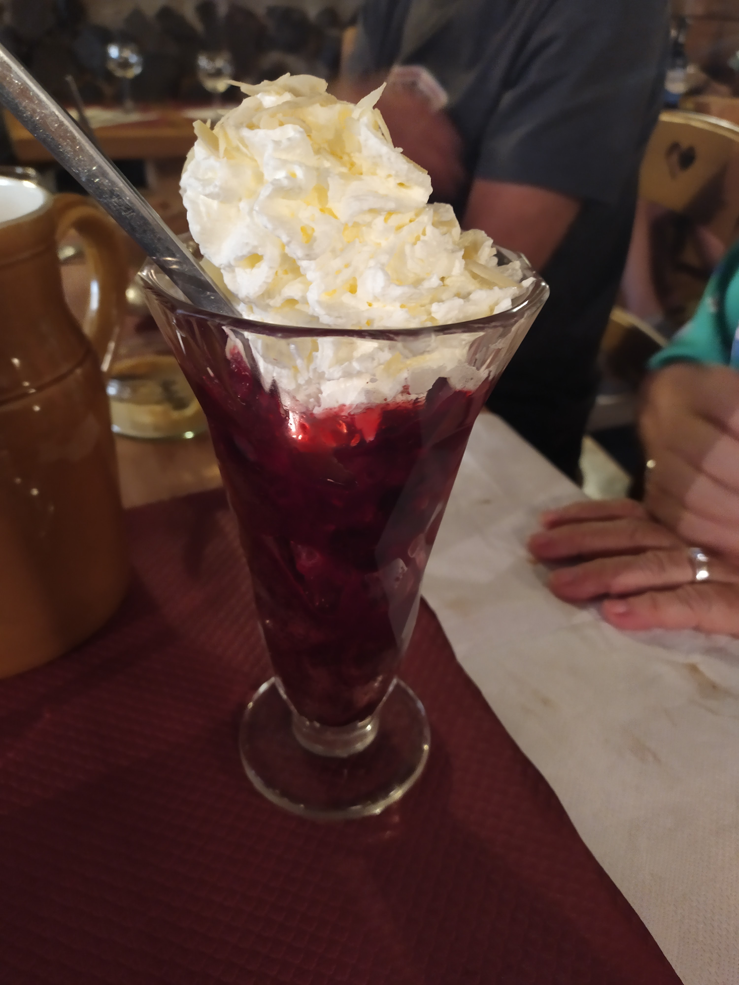 Belle raclette mais nous n'avons pas pu finir le fromage ! S'il vous reste de la place pour le dessert, les profiterolles sont délicieuses selon les enfants !