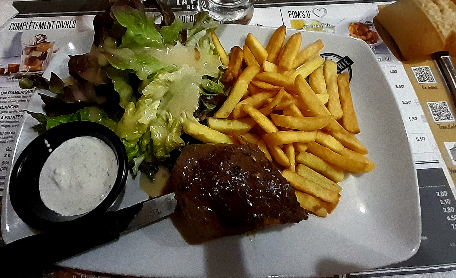 Bien accueillis, (Entrecôte frites : 25 €, sorbets 2 boules 4 €) En revanche un vendredi à 21h50, on nous comprendre qu'il est l'heure de partir car l'établissement ferme...... UN VENDREDI SOIR 21H50 ....... Je pensais que c'était un restaurant et pas un fast food ..... Pour le prix, je conseille un vrai restaurant !
