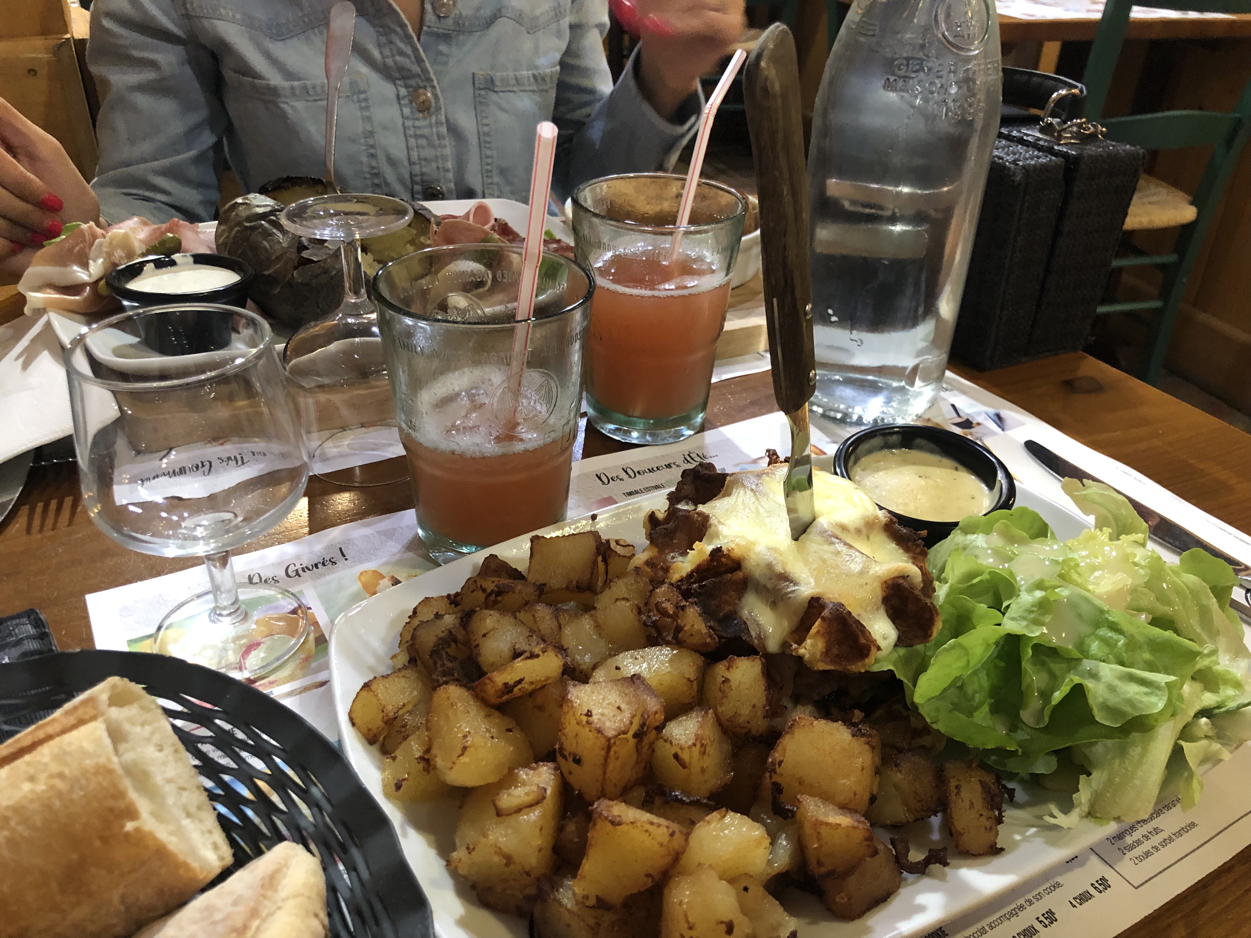 Resto avec concept original style ancienne grange, pomme de terre à l'honneur avec fromage raclette et autre nous y avons bien mangé, viande onglet hyper tendre et savoureuse et dessert copieux, les serveurs sont agréables et rapides, manquait peut être une petite ambiance musicale, ou sinon au top et prix corrects