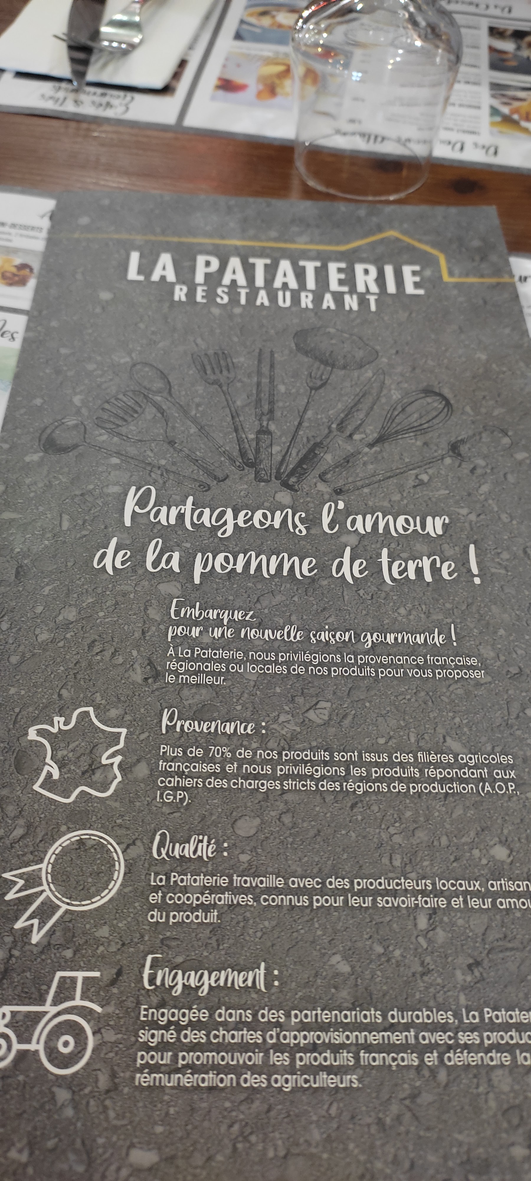 Restaurant accueillant où vous serez dépaysé par la déco typiquement montagne mais avec des Monsieur et Madame patate nichés un peu partout. Le repas se passe bien et les prix sont corrects. Le personnel est agréable sans être pressant. Le client prend le temps de manger, ce qui est suffisamment rare pour être souligné. Petit bémol concernant les places de parking, pas en nombre suffisant et l'accès au restaurant, caché par d'autres commerces (et, le 10 novembre 2022, par un gros camion devant l'entrée du parking :) ).
