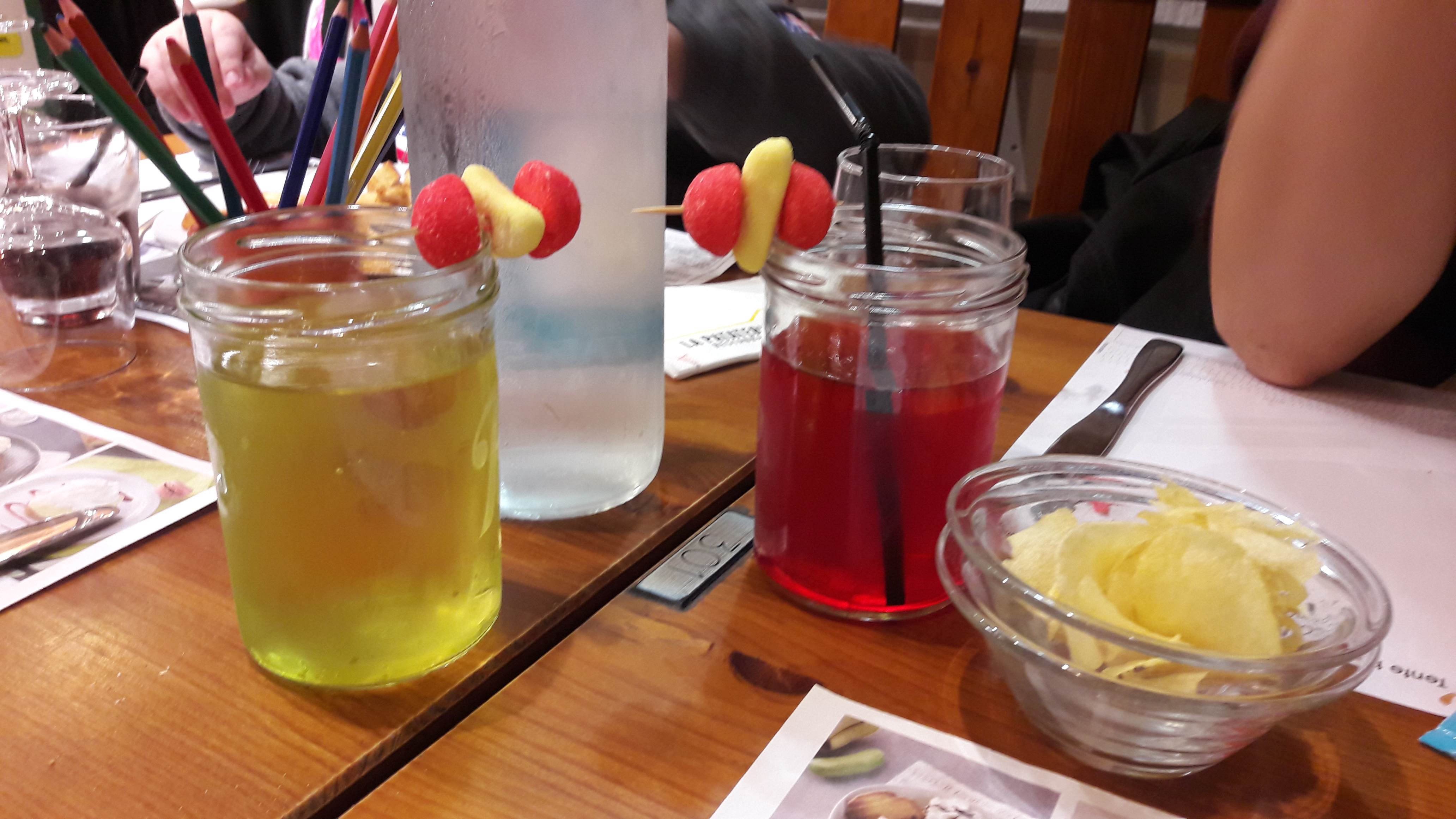 En famille, sympa, pot de crayon pour les enfants, remise pour aller faire un tour de karting pour les petits.