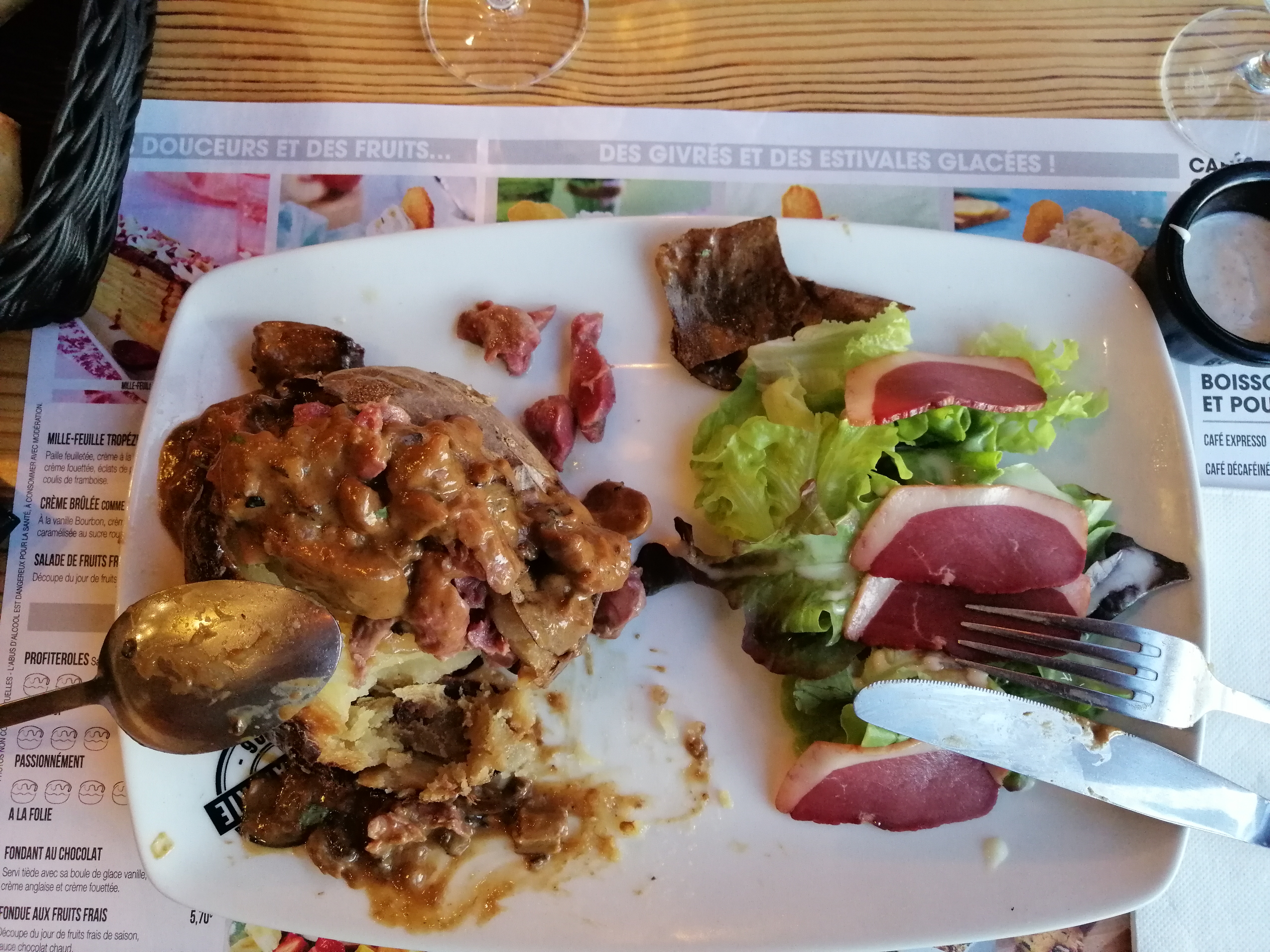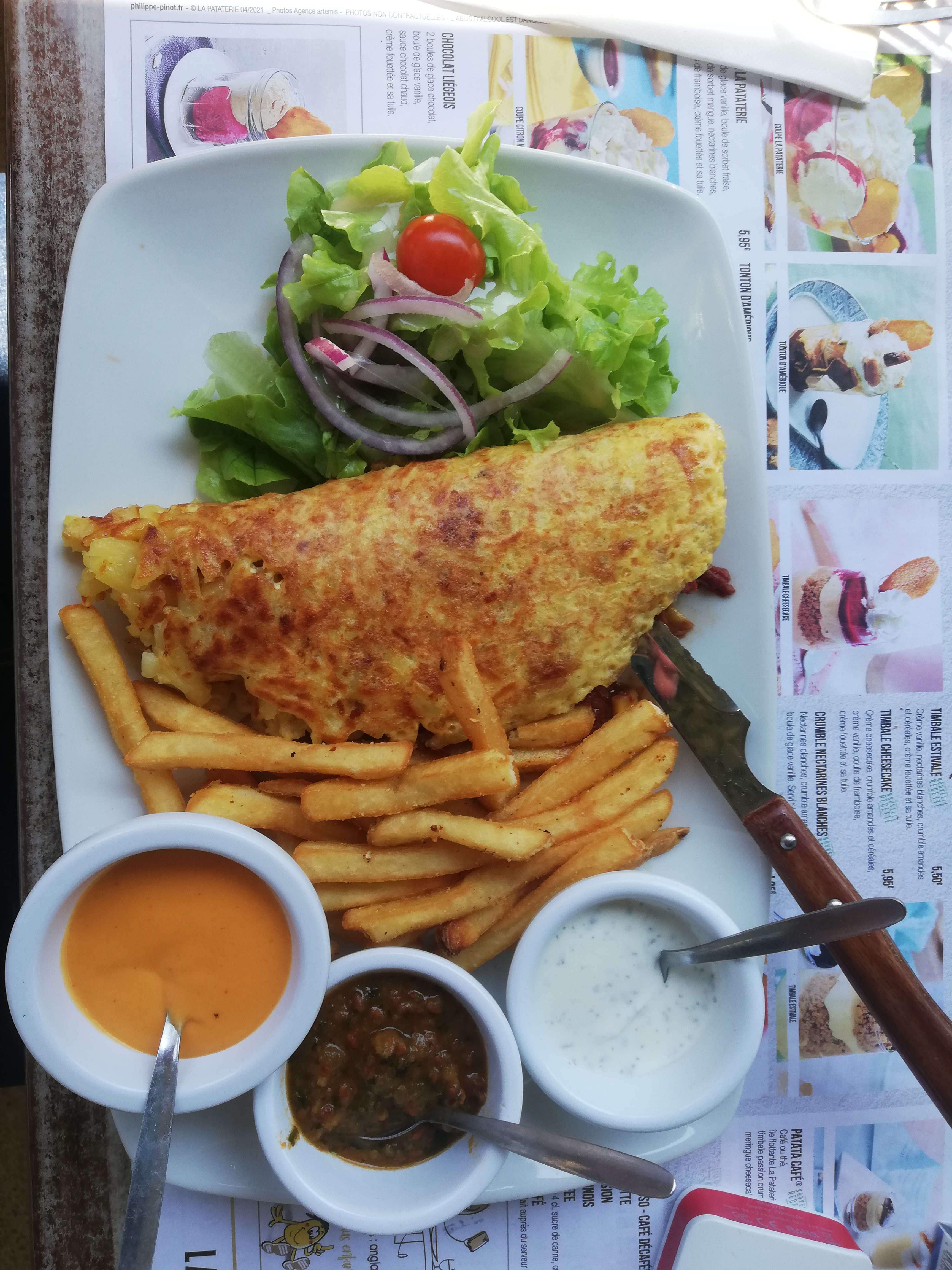 Retour un dimanche du week-end de l'ascension et arrêt à la pataterie. Restaurant bondé (fête des mamans ce jour là ) Mais le patron hyper gentil et accueillant ainsi que tte la Team nous ont trouvés une table en terrasse