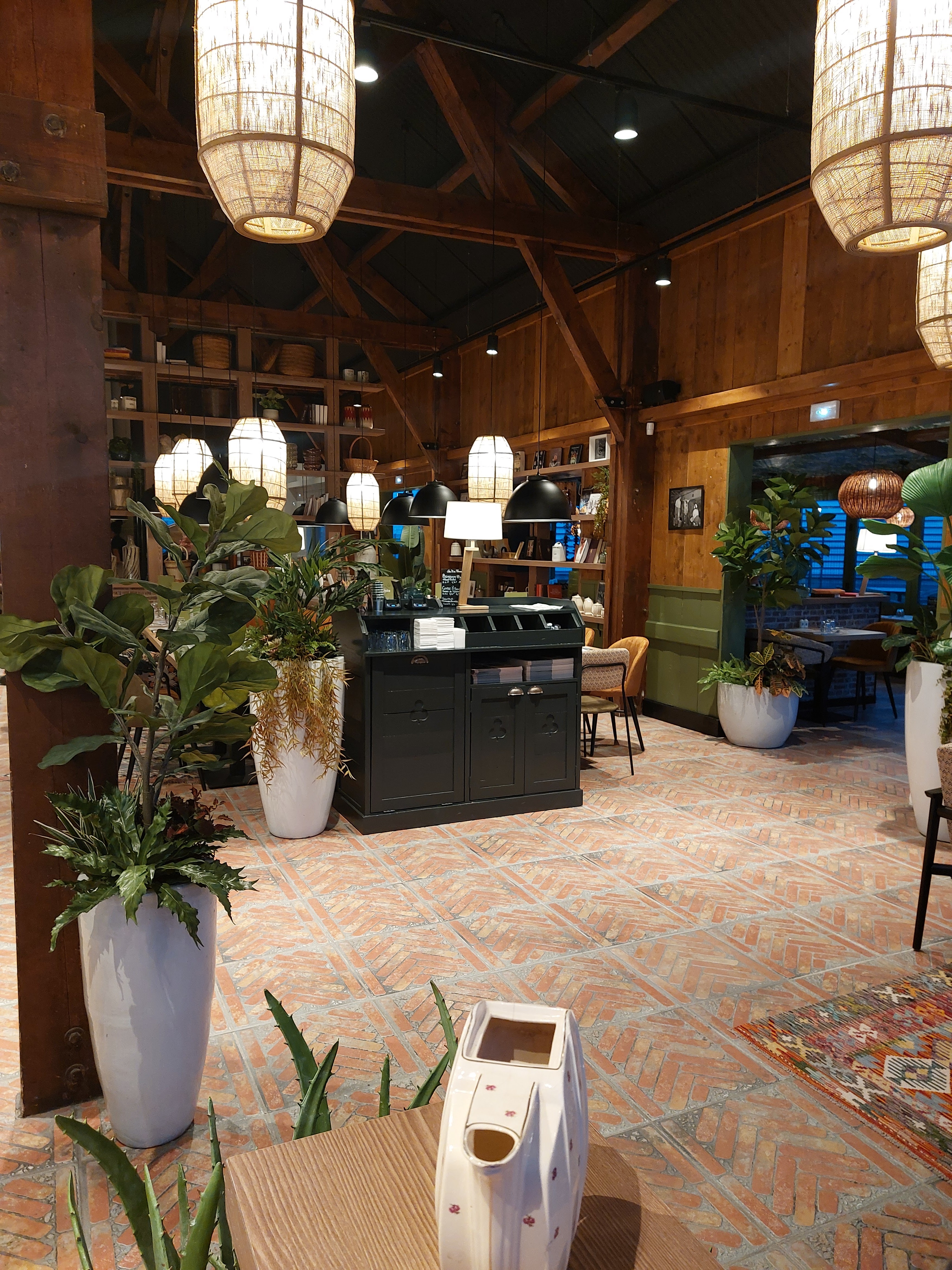 Décoration Jolie par contre déçue à peine finis notre planche avec notre apéritif pour dire on venait de mettre notre dernière bouchée à la bouche qu on avait déjà notre plat, deuxièmement on ne nous demande pas ce que l on veut boire en mangeant obligés d attendre que qqn passe donc boisson à mi chemin du plat et dernièrement il a salade verte n est pas bonne de la sucrine de plus arrosée que d huile même pas de vinaigre vraiment écœurante sinon le reste était bien mais des petites choses à corriger pour garder la clientèle je sais de quoi je parle je suis du domaine