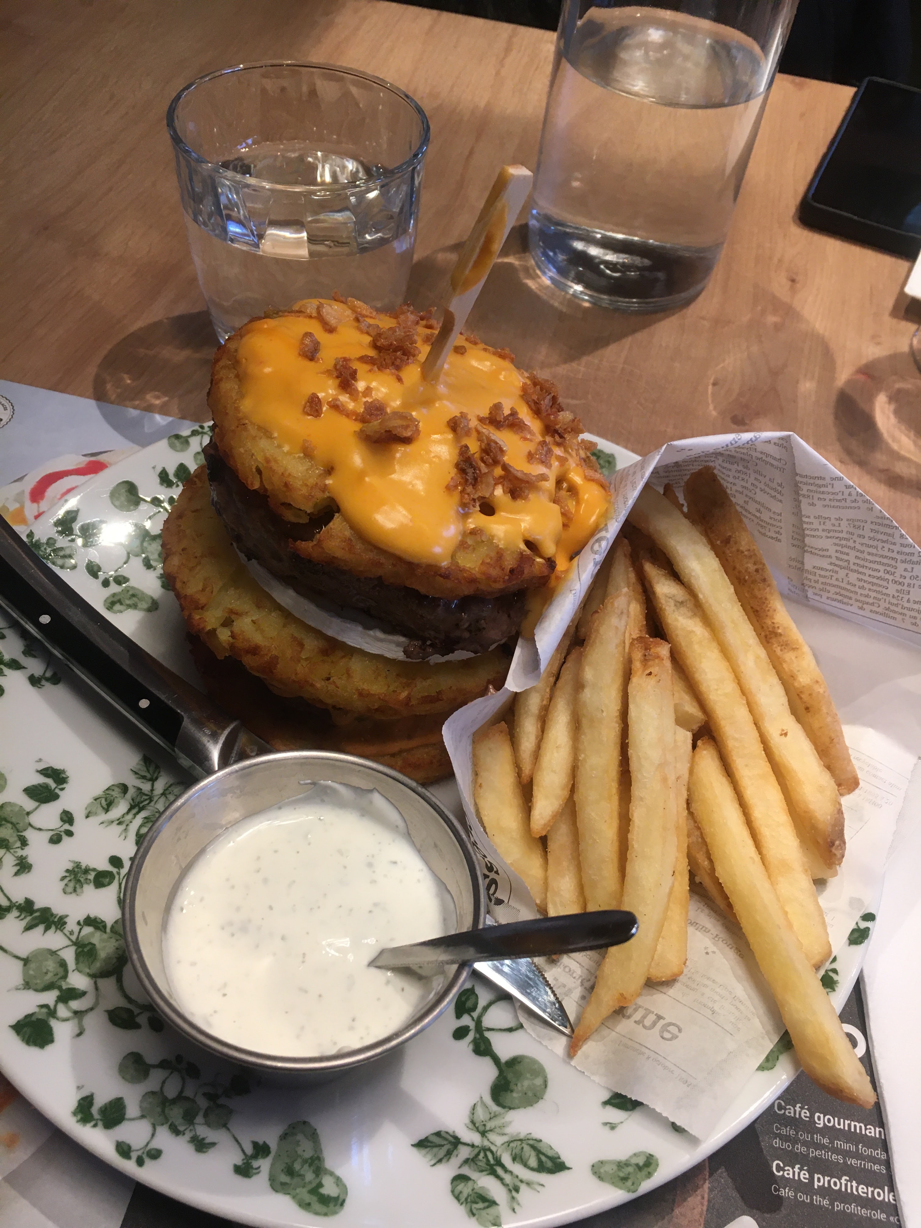 Lieu agréable redécoré content de retrouver la pataterie à Châlons. Très beau cadre belle déco. Serveuses très bien. Bon repas 96 € 3 repas plus 1 bouteille de champagne