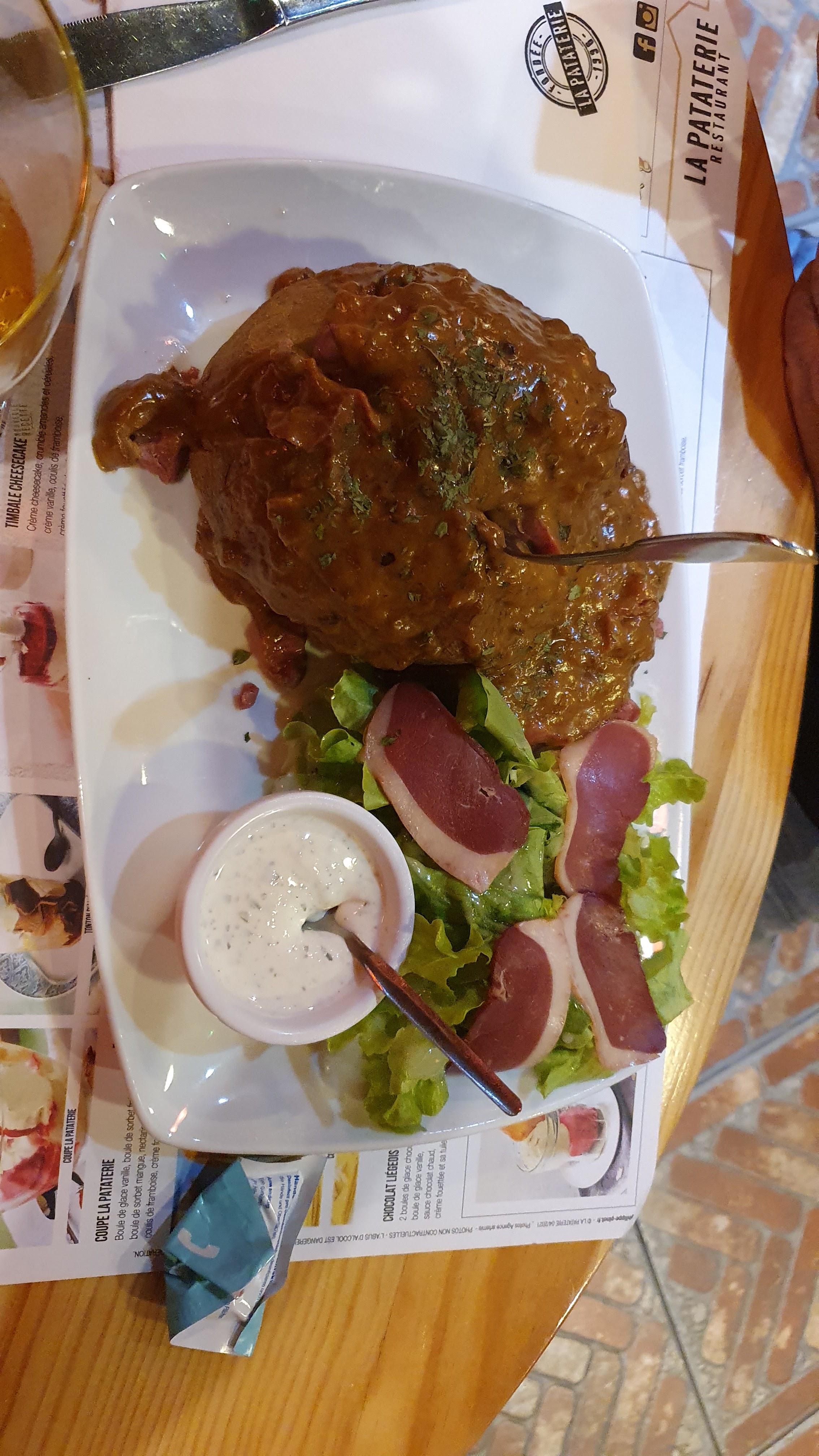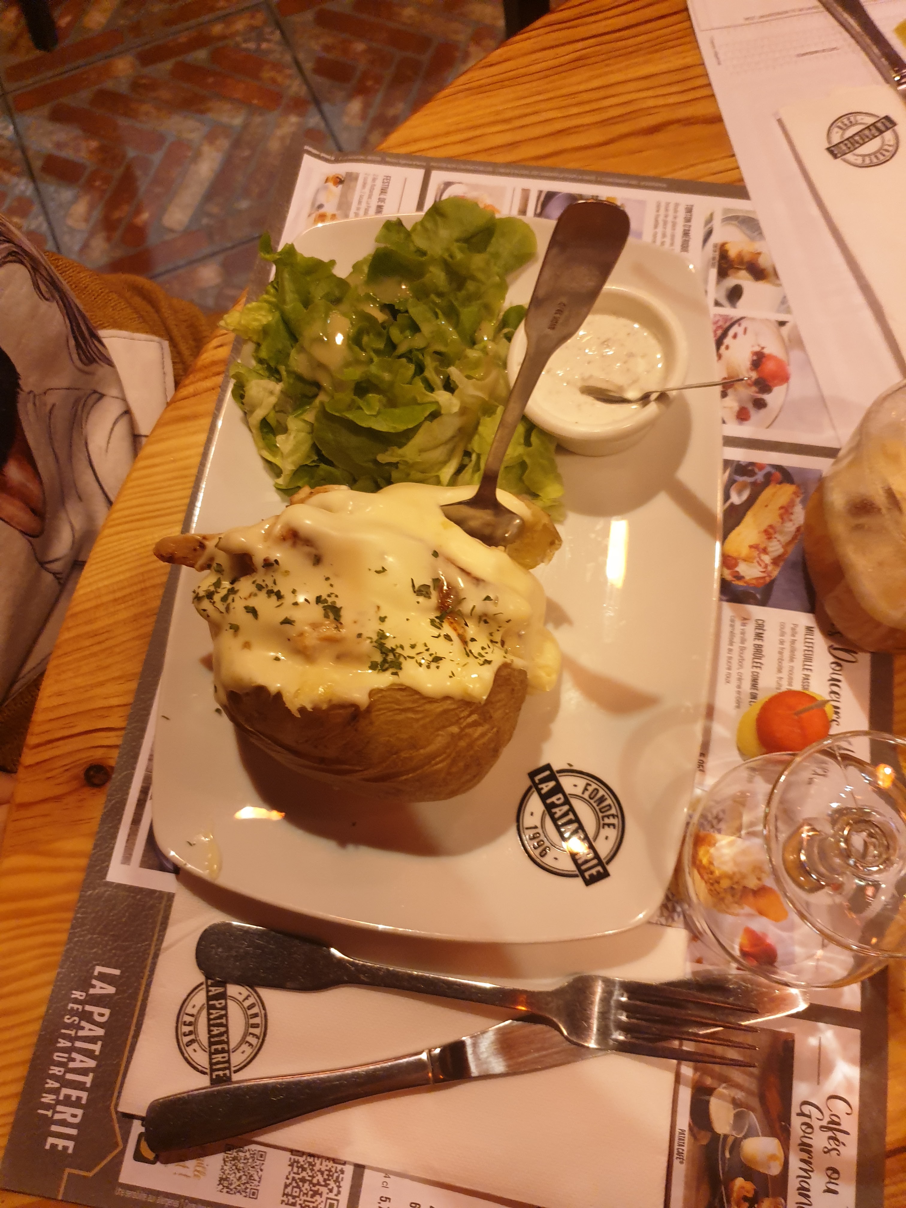 Une pataterie comme on les aime. Serveur masqué, accueillant et sympa. Une déco et une atmosphère génial. Dans les assiettes c'est gourmand parfois croquant. Poir ma part c'était la savoyarde et je me suis régaler avec petite double planche en apero. Bref resto sympa à faire entre amis ou en famille.