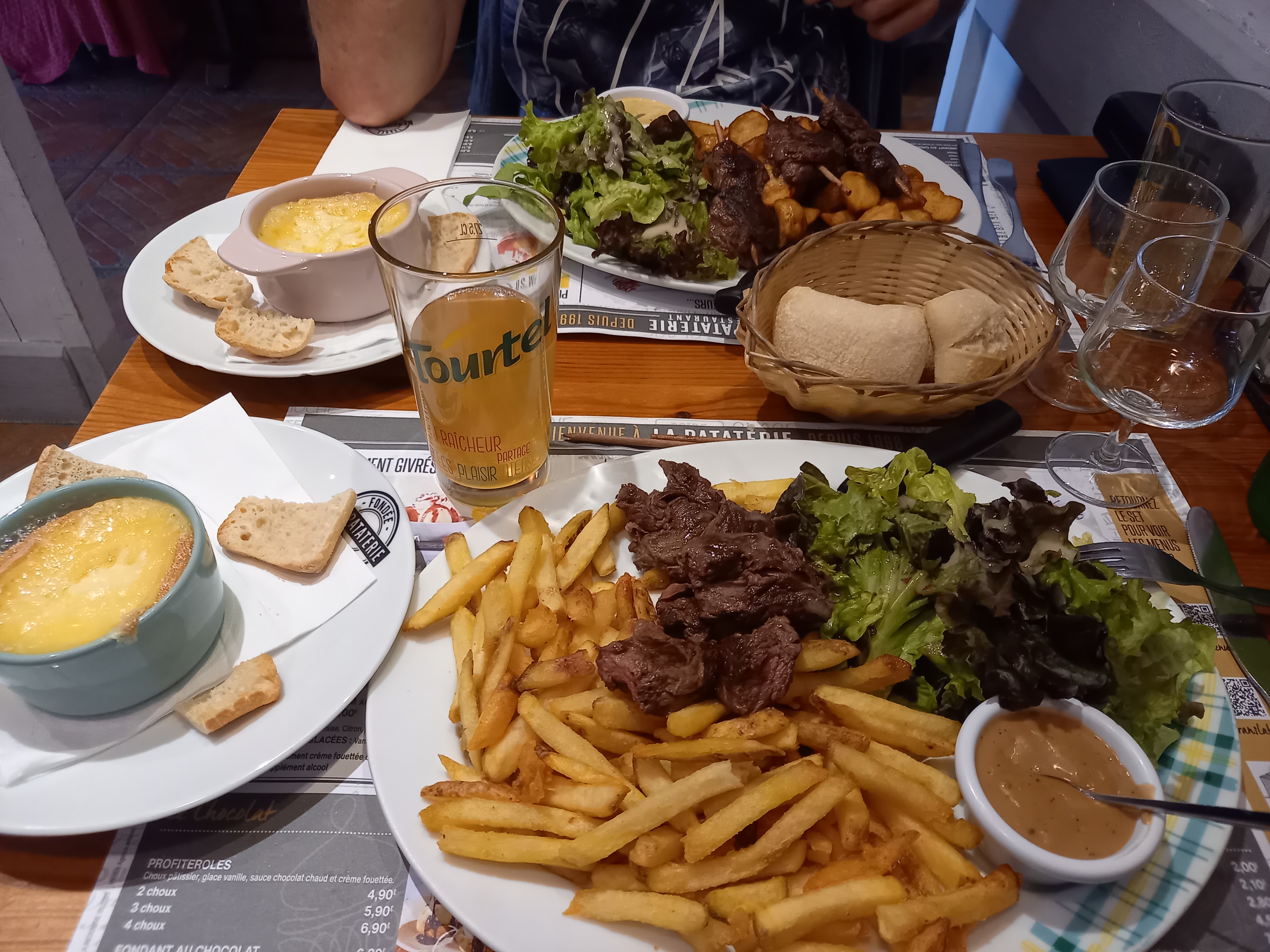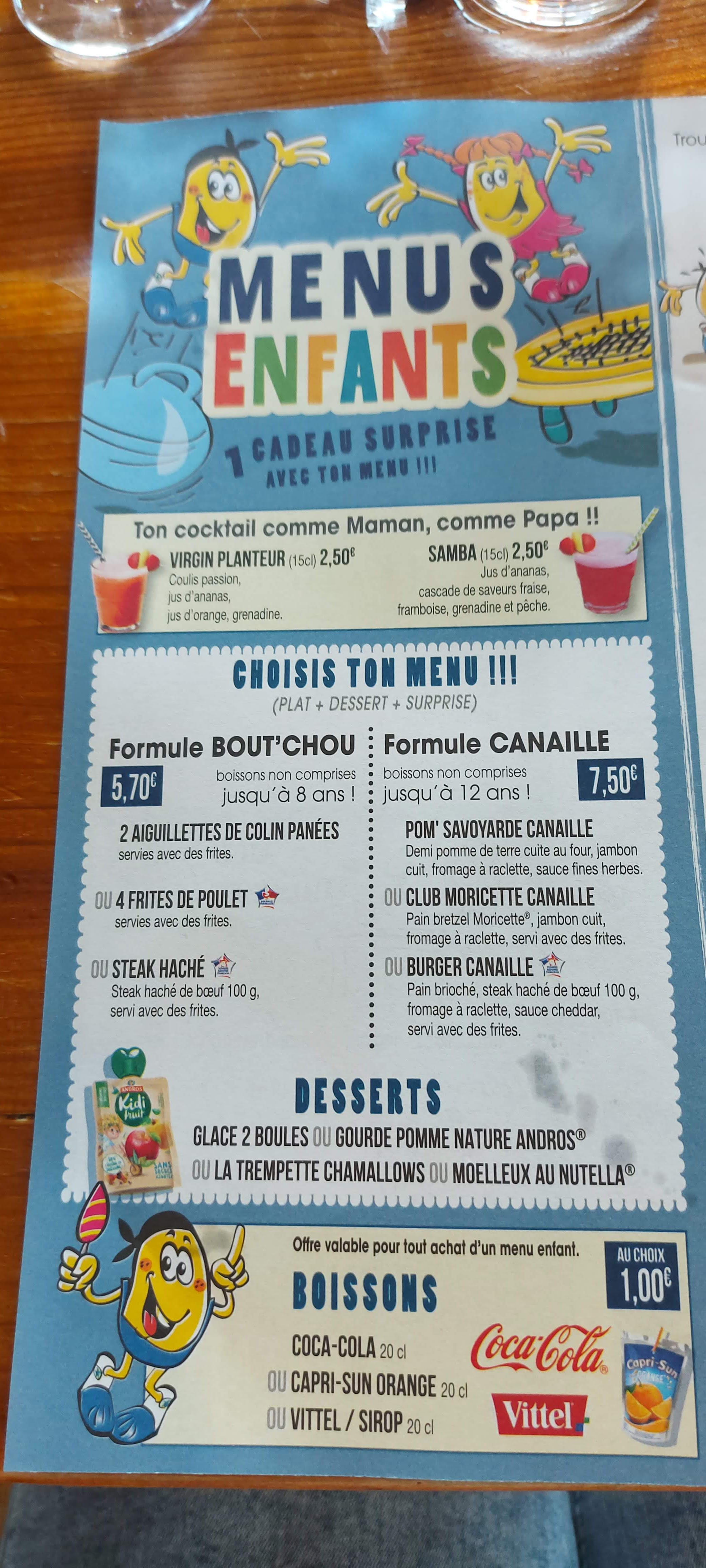 Eh bien déçu des assiettes aujourd'hui, pavé de boeuf sec,pas pu le finir,, cheeburger pas terrible,frite pas maison pourr une pataterie c quand même la base, créme brûler soit disant chaude au dessus arrivé là et bien non , rempli de sucre dc pas terrible, frite congeler, pâté de l'assiette a partager très bon . Je pense que c'était notre dernière la bas pour nous .