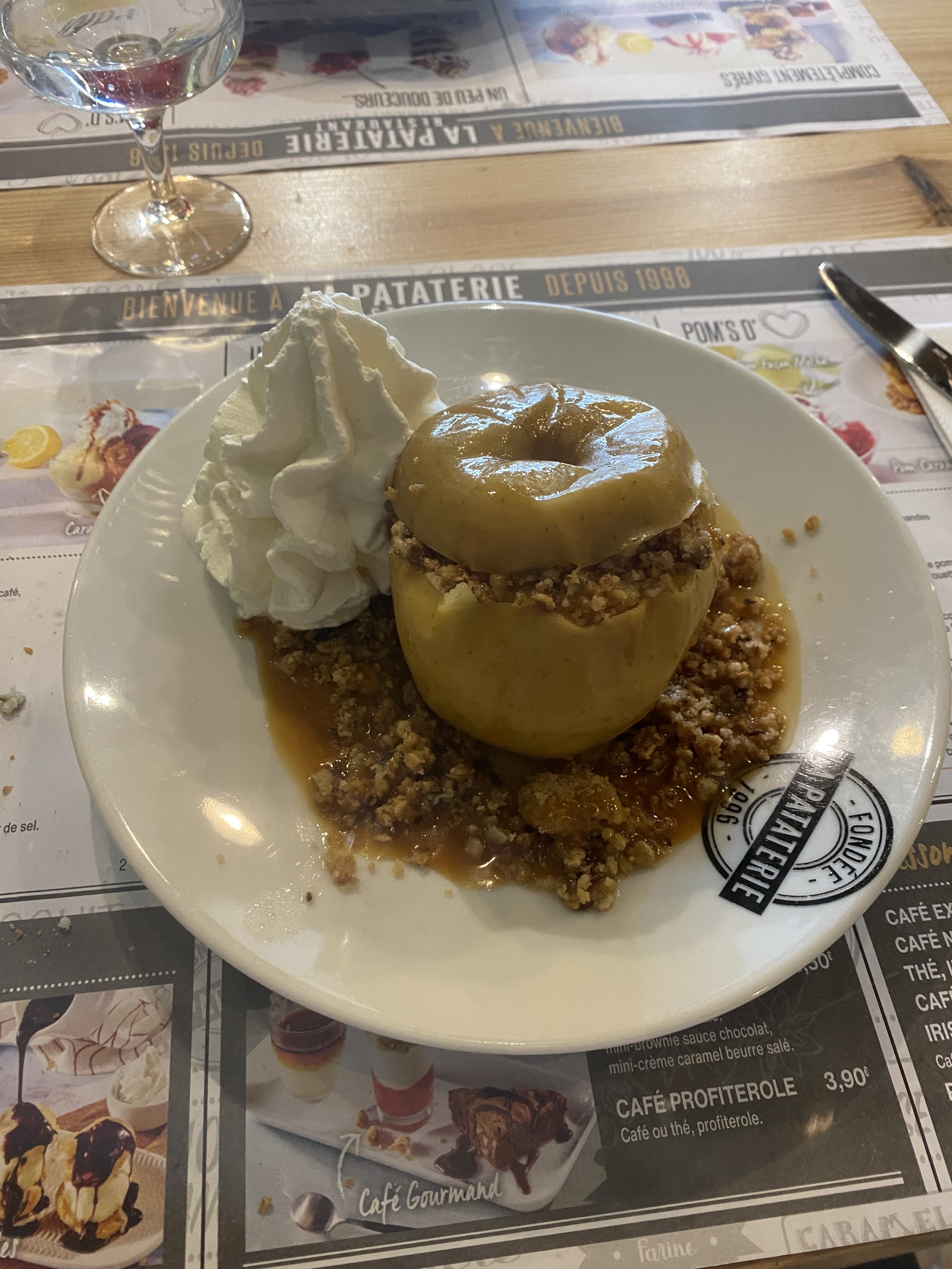 Première expérience a la Pataterie avec ma maman !! Une tuerie manger des pommes de terre comme ça ! C'était très bon, par contre sa me laisse pas de place pour le dessert 😅 et je pense qu'il manque un petit dessert de salade de fruits ou ananas par exemple, pour aider à la digestion de ce bon repas.
